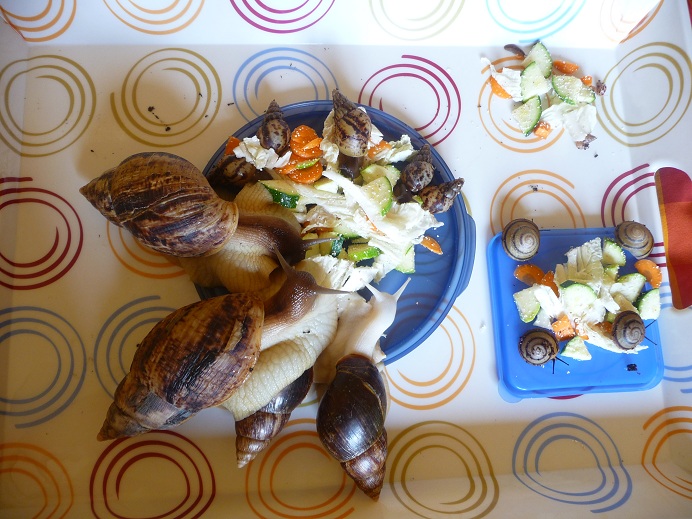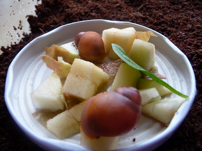 čus kdybyjste chtěli mí šneci milujou piškoty ale nesmí být rozmočené a kočičí granule jim nejvíc taky jedou..jenom už je zbírat.Mám dvě mršky rodzi šupa šneci a přidám i mé foto pak