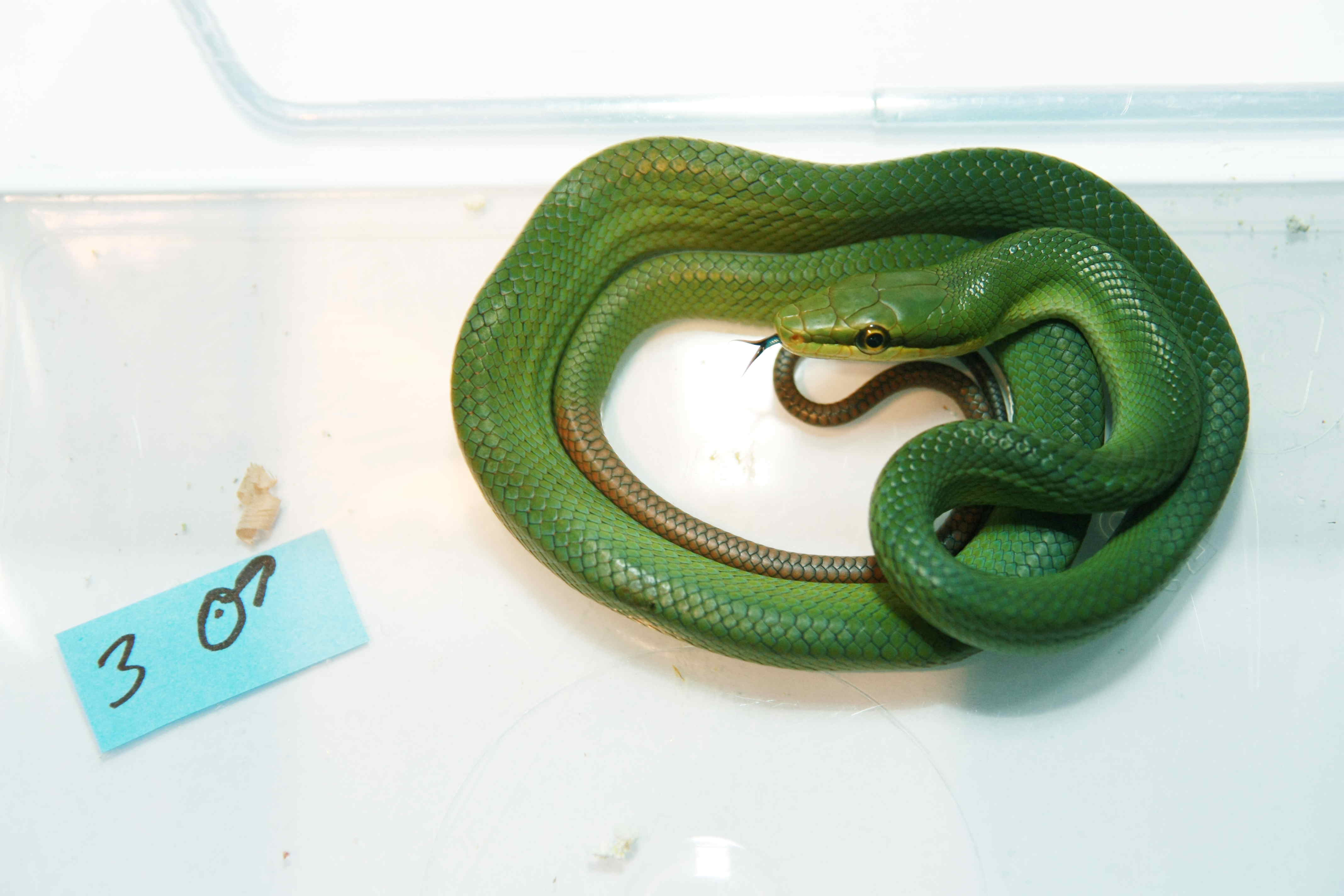 V nabídce stále ještě 1 samička Gonyosoma oxycephala částečně rozkrmená za 1800 kč. Pavel Vyskočil