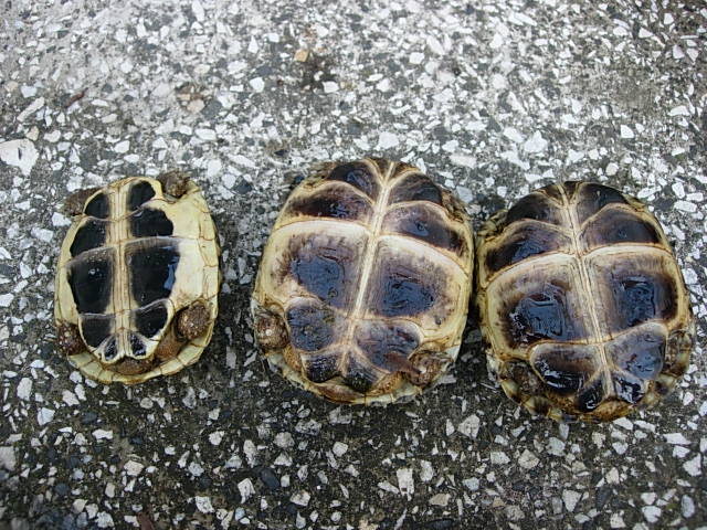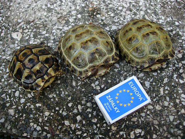 Prodám 3 odrostlá želvata: Testudo horsfieldii - vlastní odchov 7/2007, 2ks, letos zimované, venkovní chov, bezproblémové, CITES, á 2.400,- nebo obě za 4.500,- Testudo hermanni - NZ 9/2007, 1ks, CITES a výjimka, 2.200,-, Vše za 6.500,-, Třinec, mob: 608779891