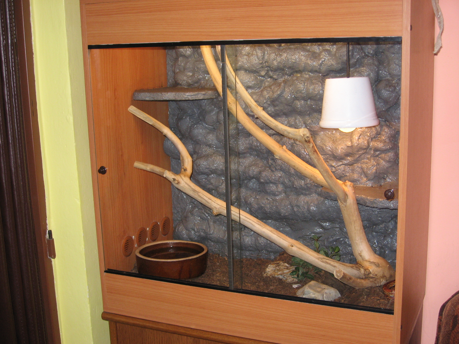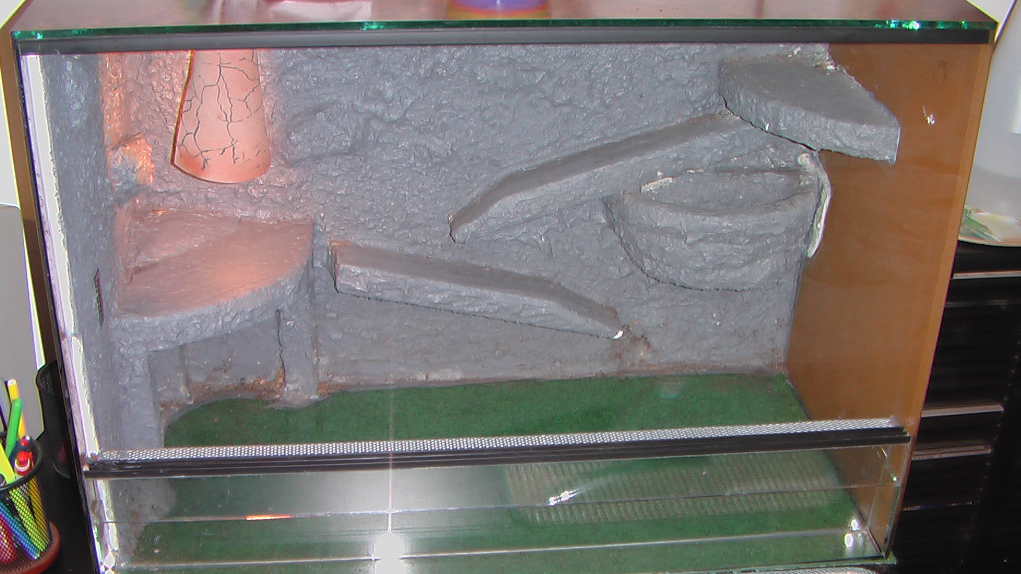 prodám terárium 55x50x30 vxdxš lepené drobným kamínkem a kameny...komplet vybavené se vším cena 2000,- při rychlém jednání sleva jentera@seznam.cz