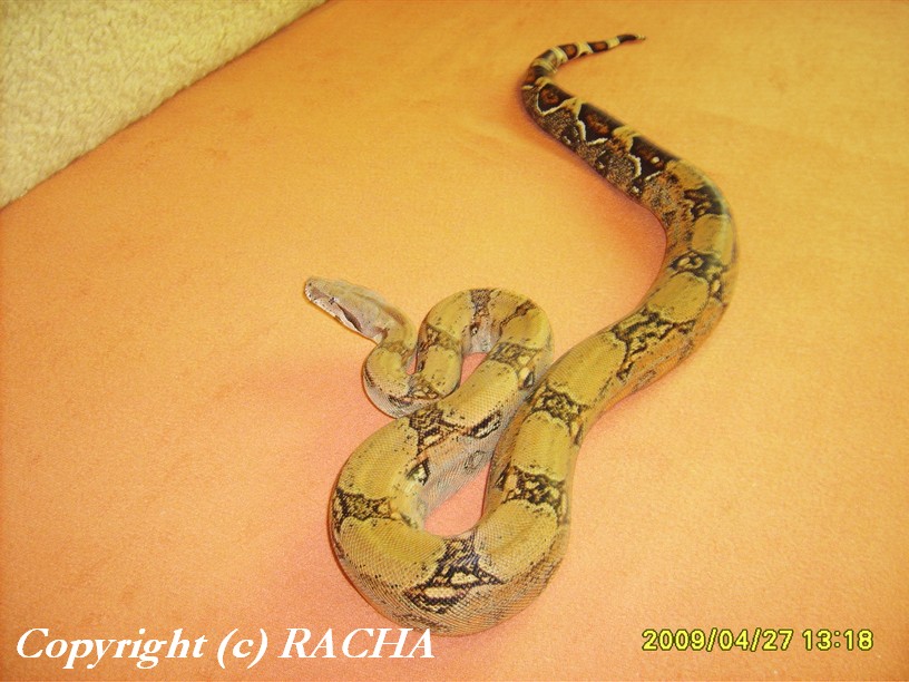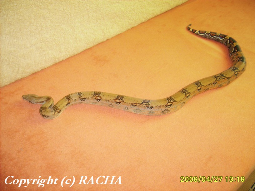 Python curtus brongersmai 0,1 - prodám samici 3 roky starou, asi tak 150 cm dlouhou, perfektně žeroucí. Klidná, nekousavá. Cena 4000 Kč. Tel: 728 916 488, email: p.sott@seznam.cz
