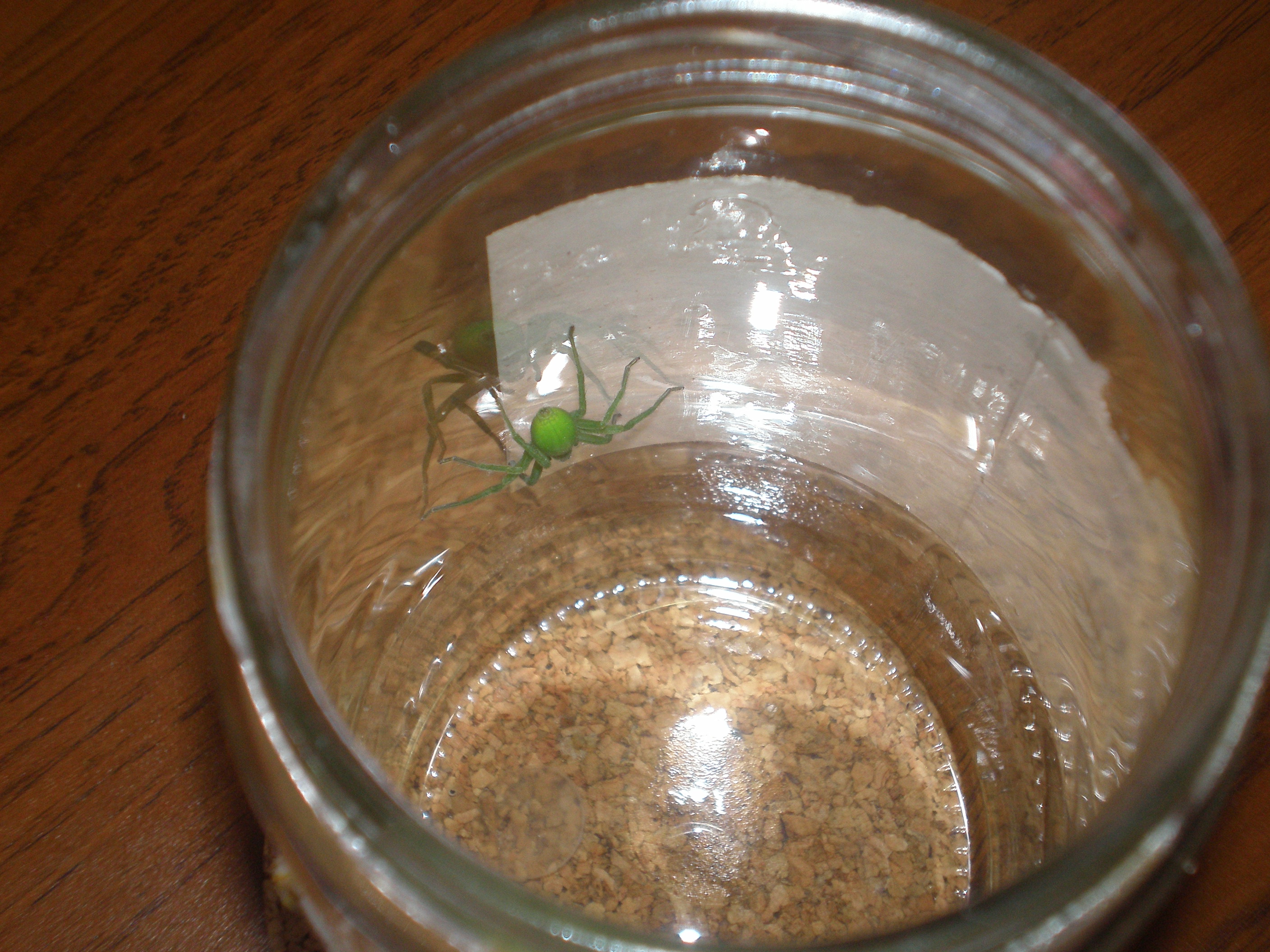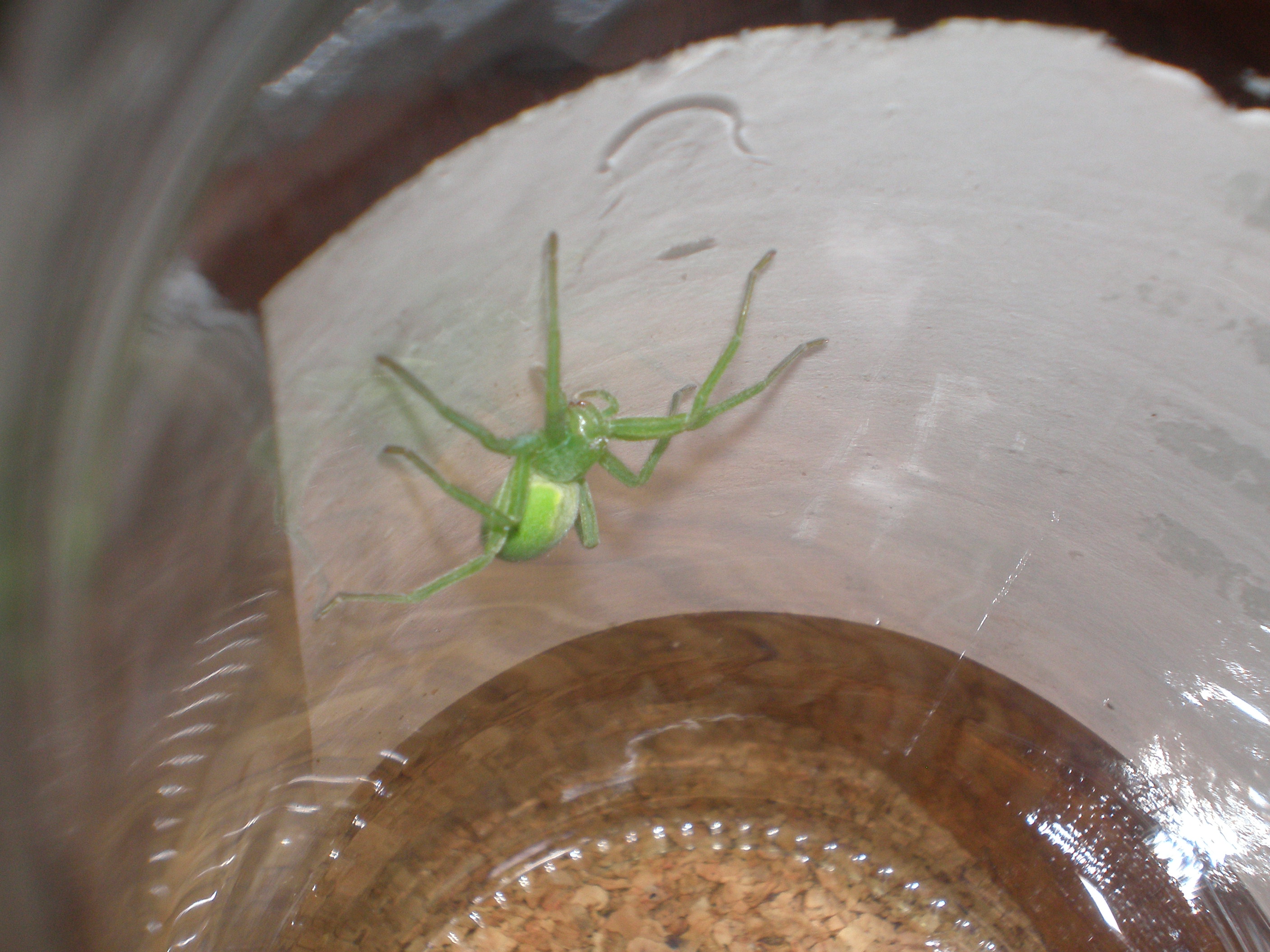 JJ je pěkná ale zelenýho pavouka jsme viděli poprvé v životě. Nikdy jsem se o pavouky nezajímal a jak jsem psal, moje manželka a pavouk? To nejde dohromady, jen pro představu co k nim cítí: představte si pavoučka, malinkatýho, skoro jako špendlíková hlavička, pouhým okem téměř neviditelnýho a moje žena je schopne ho vidět snad na 20 metrů. Buď s ukrutným křikem vyleze někam do výšky, nebo je schopna jej usmrtit lopatou i přesto, že leze po okně... Milovníci pavouků prominou, ale je to prostě tak