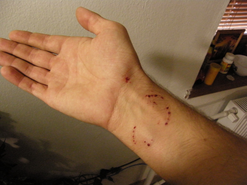 Tak po mě dneska omylem vyjel můj prcek :o) Nevěděla jsem co dřív, jestli chytat zdrhajícího potkana, zachraňovat si odkrvenou ruku a nebo uklidňovat hysterického psa