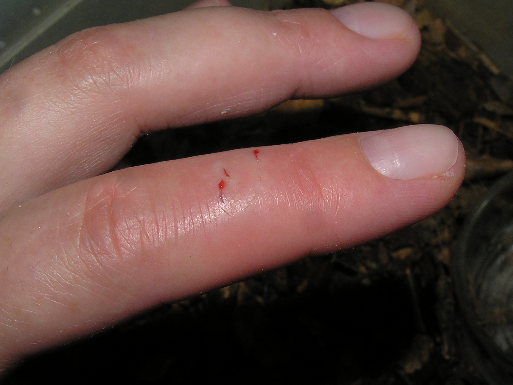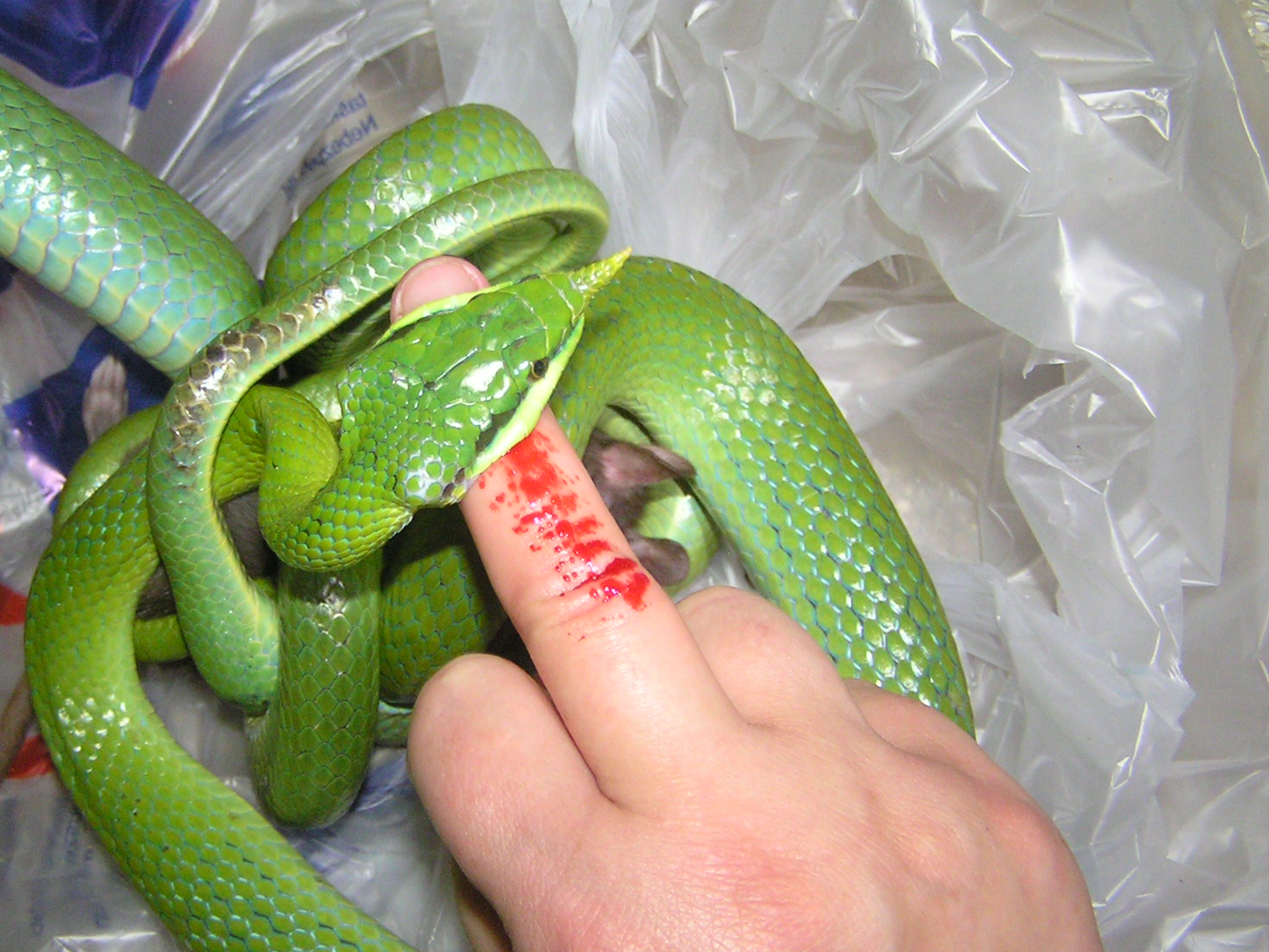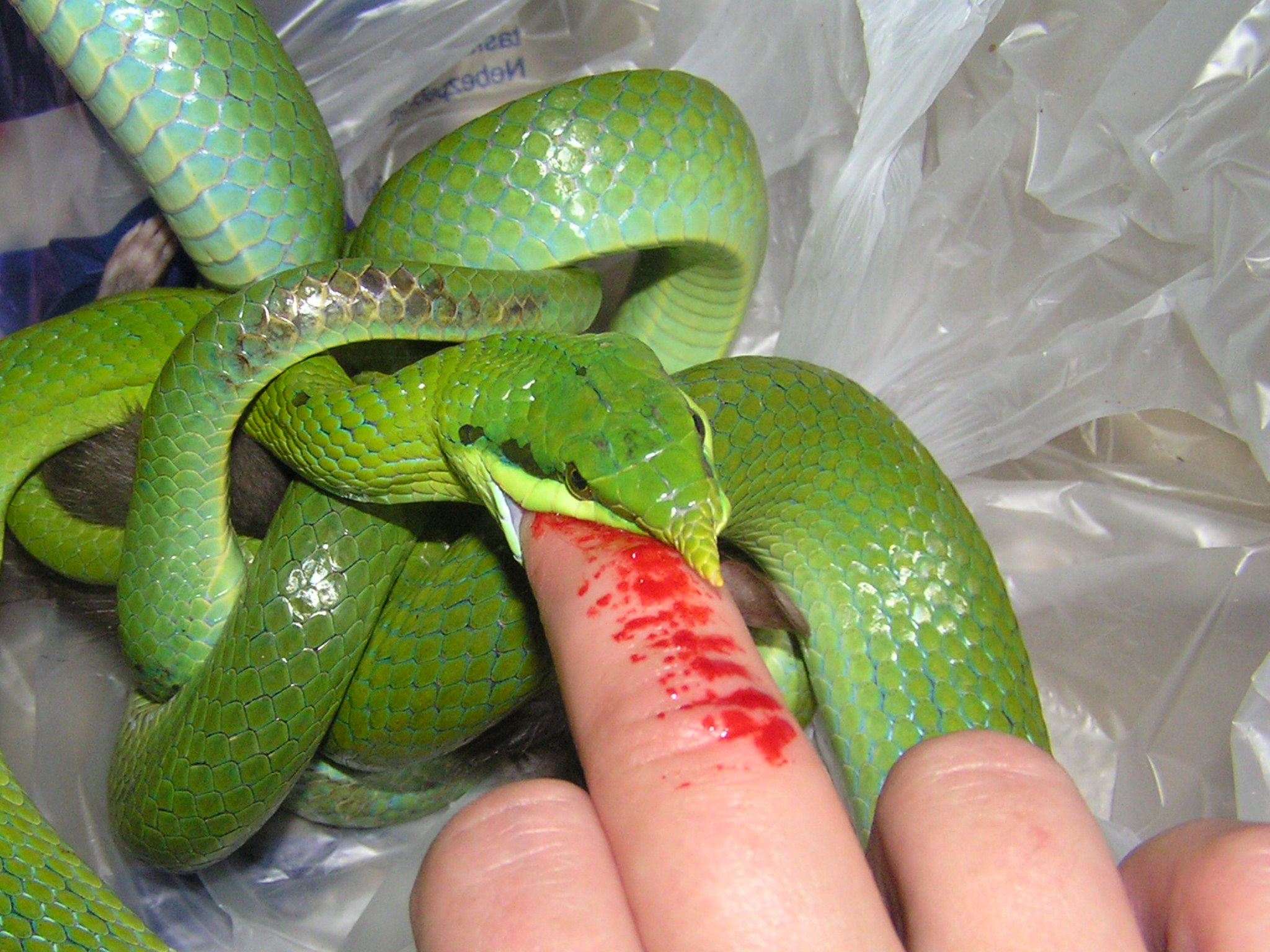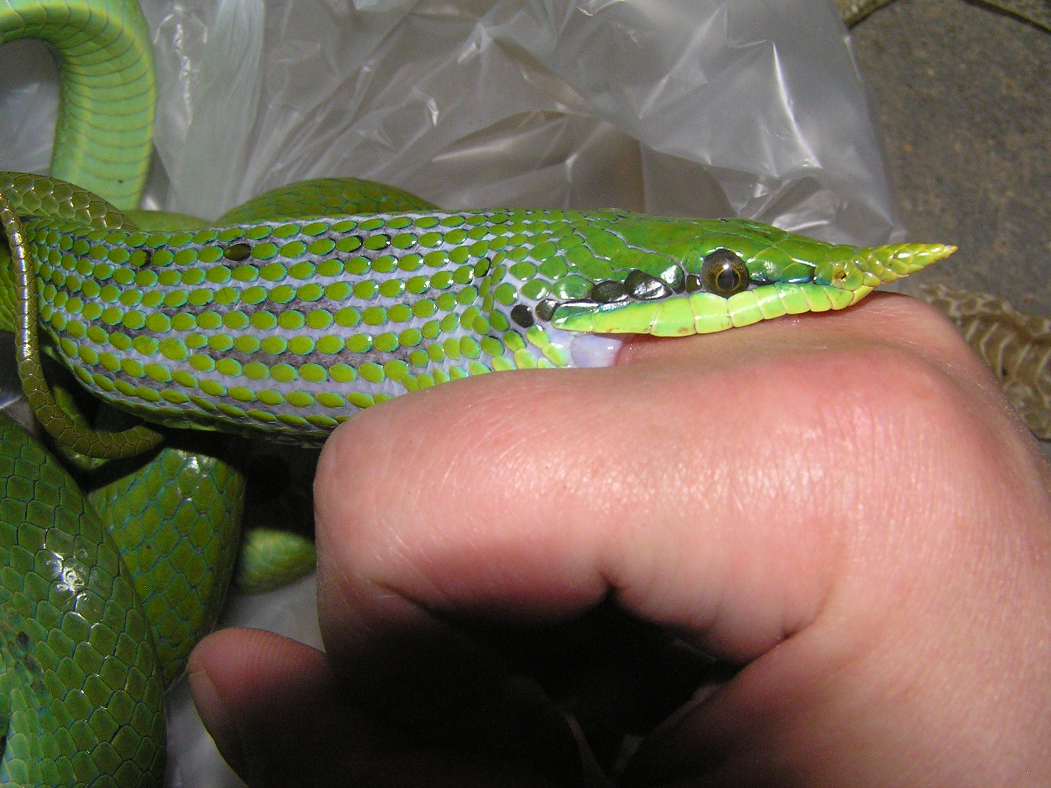 tím jsem samozřejmě nechtěl ukázat, že jsou tito hadi obecně agresivní. záleží na momentální náladě (v mém případě i na pachu rukou). Stává se to jen vyjimečně.osobně to beru jako určitý druh "lásky".