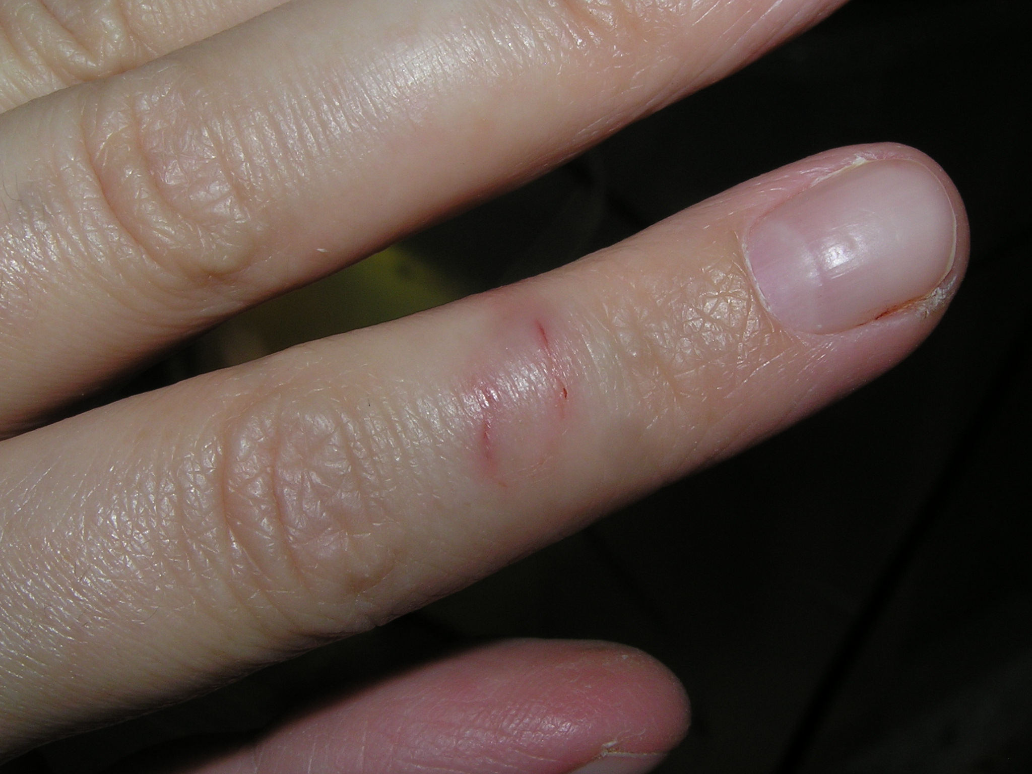 Naštěstí je mrňavá, tak z té ťafky byly jen dvě kapky krve a teď už ani není co fotit