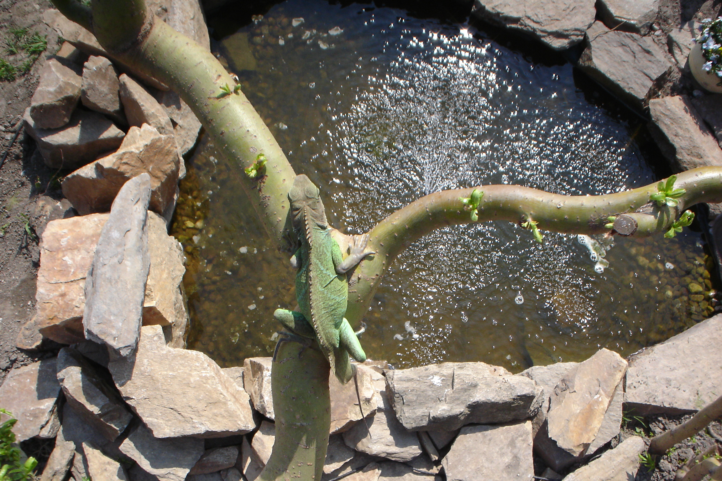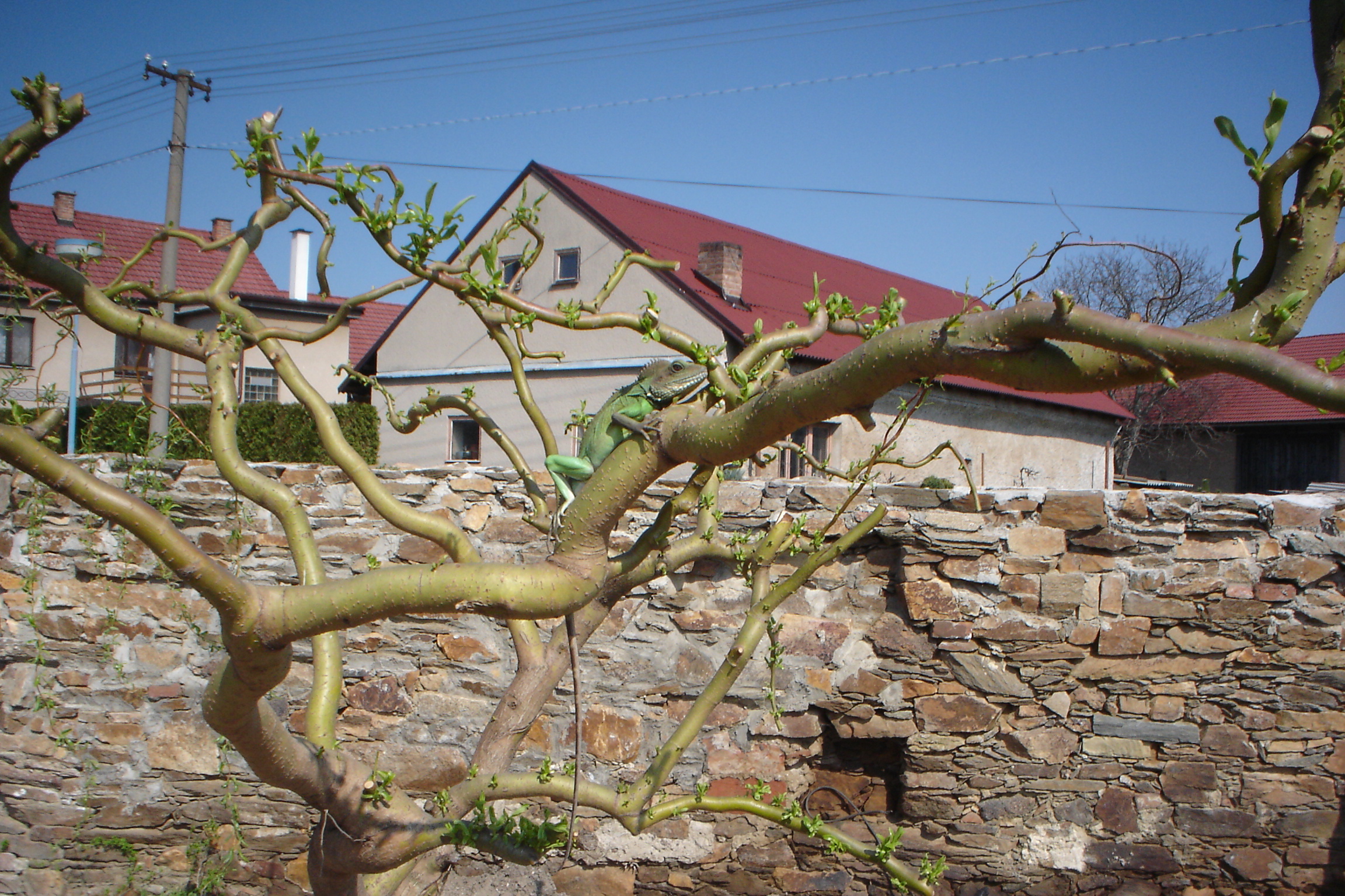 V plastovém boxu? Má tam dost místa? Já když dávám svého agamáka ven, tak my zároveň záleží i na tom aby se mohl proběhnout (po té vrbě). Pouštím ho do takové skalky kde jsou zasazeny dvě vrby pod nimi je jezírko a malá fontánka. Kolem udělána dlažba z kamenů mezitím zasázené různé květiny. Když jsme to vytvářeli tak bylo myšleno i na mého agamáka aby se dal bez problému však pod dozorem vypustit ven. A proto kolem je malé pletivo (také kvůli našim pesanům) A ze zádu je velká zeď, aby se pokud možno zamezilo útěku. Agamák leze nejvíce v (zatím malé) koruně stromu kde má zajištěn i dostatek místa na slunění i na dostatek chládku. Skočil si i do jezírka kde nám vylovil malého karase, což jsem se divil, jelikož jsem se dočetl že agama nedokáže ve vodě chytit rybku, jelikož je na ni moc rychlá. Venku se mu moc líbí (vypadá spokojeně. Mluvím o Agamě kočinčinské).