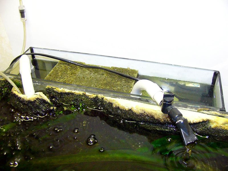 Jestli se můžu vložit do debaty, tak já to mám udělané úplně jednoduše a s minimálními náklady. Za akváriem je nádoba slepená silikonem ze zbytkového skla, s třemi přepážkami a s čerpací hlavou ATMAN za nějakých třistapadesát Kč. Kus elekrikářské trubky o průměru 22mm a 4 kolínka (možnost sehnat různé průměry, od 16 až do 50mm), a nakonec tři bloky molitanu nařezané na příslušný rozměr. Ty trubky se nemusí nijak svařovat, mají originál vylisovaná hrdla. Navíc jdou za tepla poměrně dobře tvarovat, takže v případě potřeby stačí nahřát nad el. plotýnkou, nebo horkovzdušnou pistolí. Pro zamezení ronění ve spojích, či nechtěného přisávání vzduchu, je možné trubky v hrdlech zalepit obyčejným instalatérským lepidlem na novodurové odpady. Jednoduché, levné a hlavně plně funkční, už mi to takhle šlape třetí rok, k mé maximální spokojenosti. Akvárium mám taky "kapotované", takže z veškeré instalace není vidět vůbec nic - i sání vody do filtru je schované za pozadím z PU pěny.