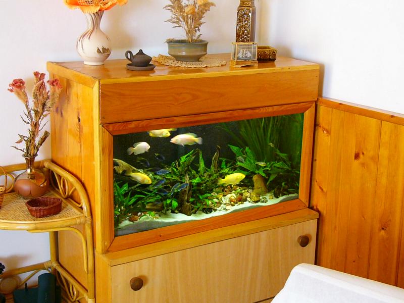 Chci si udelat drevenou skrinku, kde bude videt jen akvarium, bez rusivych prvku.