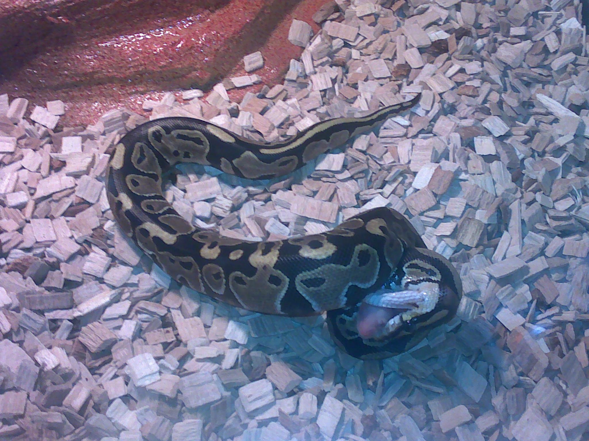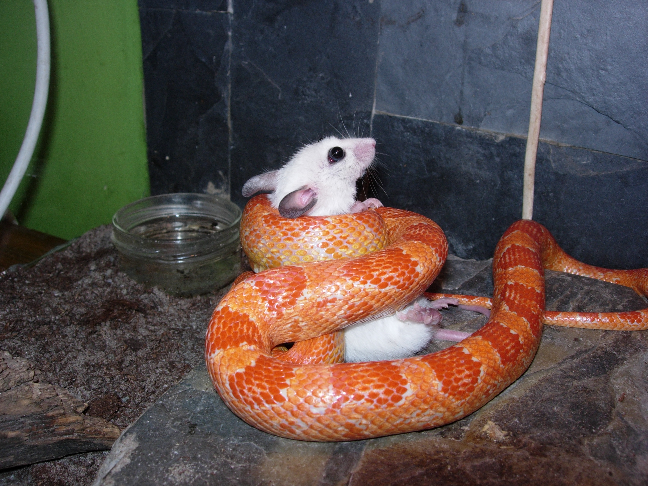 V sobotu jsem si přivezla domů z Ládví krasavici. V útérý jsem jí zkusila nabídnout myšku a tu nechtěla. Ale dala si dvě holátka - viz výš.
