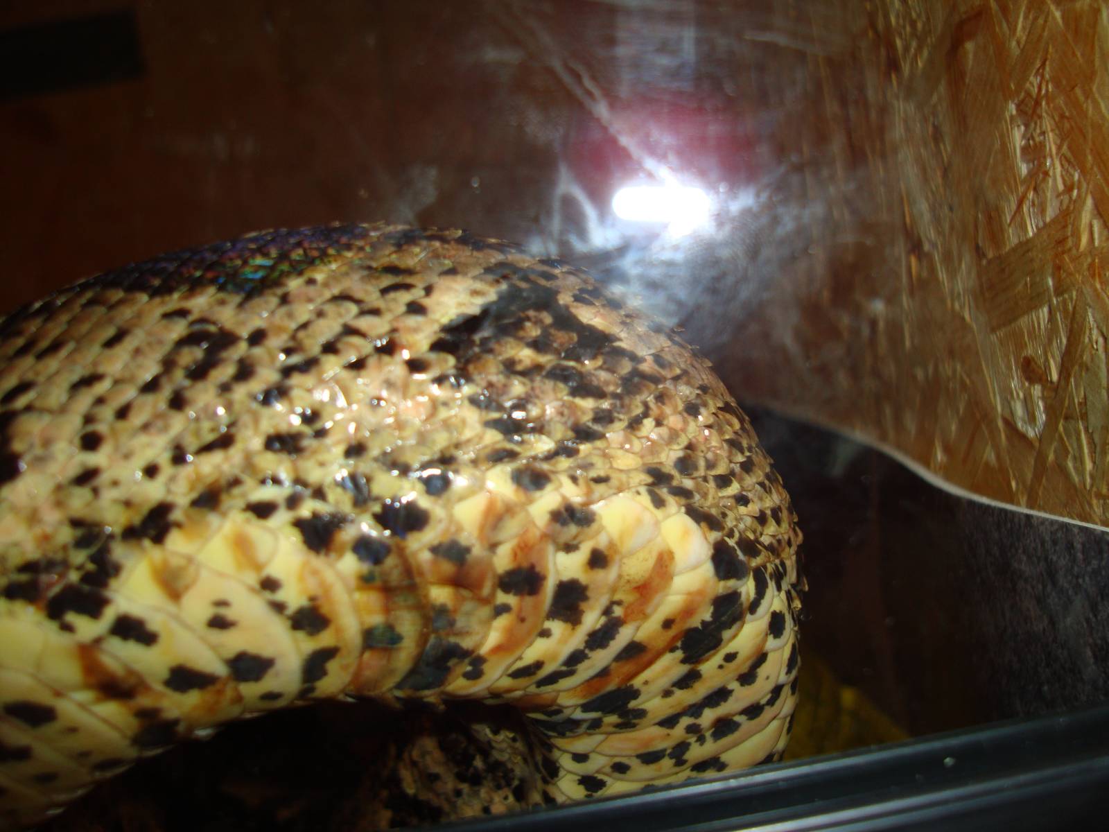 Nepoznám plísňové onemocnění u hada, ale ty břišní šupiny nejsou v pořádku. Ta paní si toho musela všimnout a hroznýš byl tedy nemocen delší dobu.