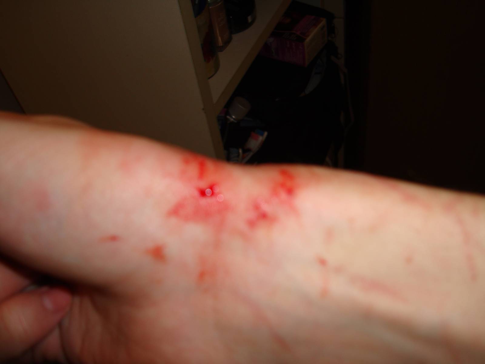 Nedelam z toho vedu, ale nejdriv jsem mel na ruce modrou modrinu, pac jsem samozrejme cuknul a vrazil rukou do desky, po par minutach to zruzovelo a dost to boli. Tohle je moje poprvy....hodil jsem na to peroxid - jeste neco mam udelat, krome toho ze si mam dat priste vetsi pozor?