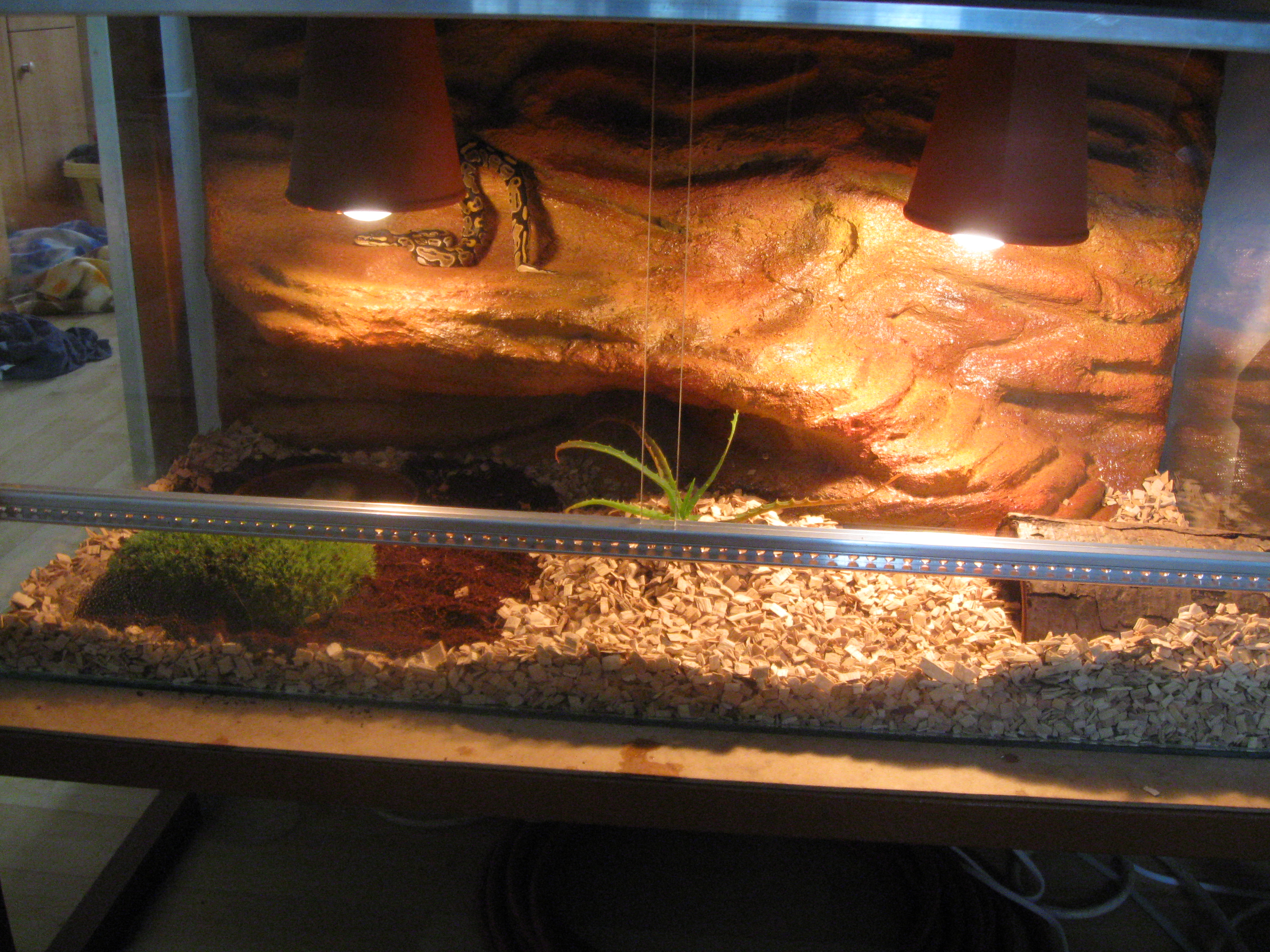 PS: to Aloe, nebo co to je za zeleninu :-D bych dal pryč. má to ostny a had je zvíře tupé a mohl by se poranit... ;-)