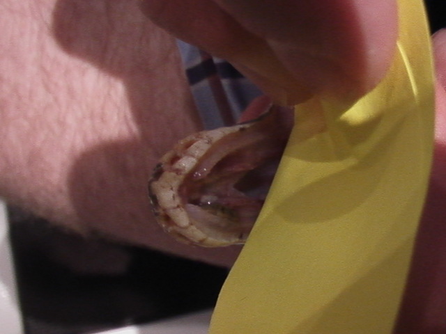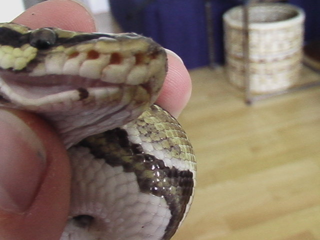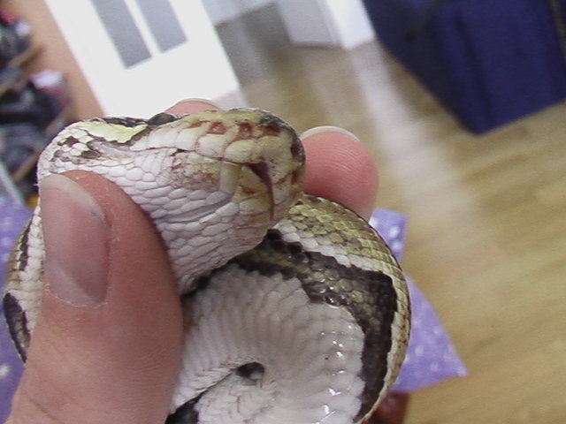Ahoj prosím zkušené chovatele o radu. Mám od ledna 2009 Python regius - zakoupena na burze od pána kterej mi řekl, že se jedná o jeho odchov. Tak sem krajtu koupil - samozřejmě import. Vytahal jsem z hada klíšťata, ktere jsem odnesl na překentrolu na parazitologii - klíšťata nebyla zdejší. po 2 týdnech po koupi jsem si všiml, že had vydává pískavé zvuky, tak jsem ho odnesl k panu MVDr Hnízdovi. Ten mi řekl, že had má zánět dýchacích cest, dostal jsem injekční antibiotika. Zánět odezněl a had začal bez problému příjmat potravu a vylučování je též bez známek onemocnění. před měsícem jsem si všíml že má okolo tlamy na hlavě usychající šupiny které jsou podrážděné. můj znamý chovatel mi řekl, že se jedna pravděpodobně o špatný svlek a ať počkám. Dnes jsem krmil a při polykání myši jsem si všiml krvavého fleku v oblasti "rtu" a dále jsem si všiml zanětlivého ložiska v tlamě- viz přikládám foto. Prosím někoho zkušeného o radu o co se jedná. Domnívám se že je to Hniloba tlamy.(veta navštívim co nejrychleji to půjde) popř díky za příspěvky a názory.