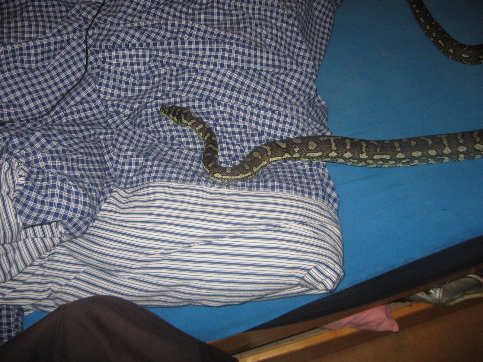 Dobry den,prosim o pomoc.Vcera na burze jsem neodolala a poridila moreliu,akorat nevim co to je za druh,predplokladam ze variegata.Ten pan tvrdil ze bude zluta,ale me to tak ne prijde. I kdyz se musim priznat,ze s kobercovkou zkusenosti jeste nemam,abych posoudila budouci zbarveni.Taky bych Vas chtela poprosit o nejake vyjadreni k jeho vzhledu,prijde me moc chudy.A taky nechce zrat.Na prvni pohled se zdal zdravy a zivej,ale moc toho teda nenaleze kdyz ho vemu do ruky,obmota se a ani se nehne nebo se smota do klubicka.Je tohle,normalni u mladat?Pozdejc jsem si dozvedela ze na toho prodejce je sama stiznost,ze prodava nemocne hady,kteri pak umiraj..ale zatim vypada ze je zdavy,na venek.Rikal ze je agresivni,kouse a ze zere v noci holata,jo a jeste ze je po druhem svleku.Vse co k tomu muzu rict,ze agresivni neni,nekouse,spis je vydesenej po kazdy co otevru tera.,a vubec nechce zrat ty holata,chapu ze je u me prvni den, mozna ze je to stresem z noveho prostredi,ale zda se mi moc hubenej,tak bych rada aby se nazral). Nikdy predtim jsem mladata morelii nevidela,proto nevim jak maji spravne,zdrave,vypadat,proto prosim o radu zkusenych znalcu