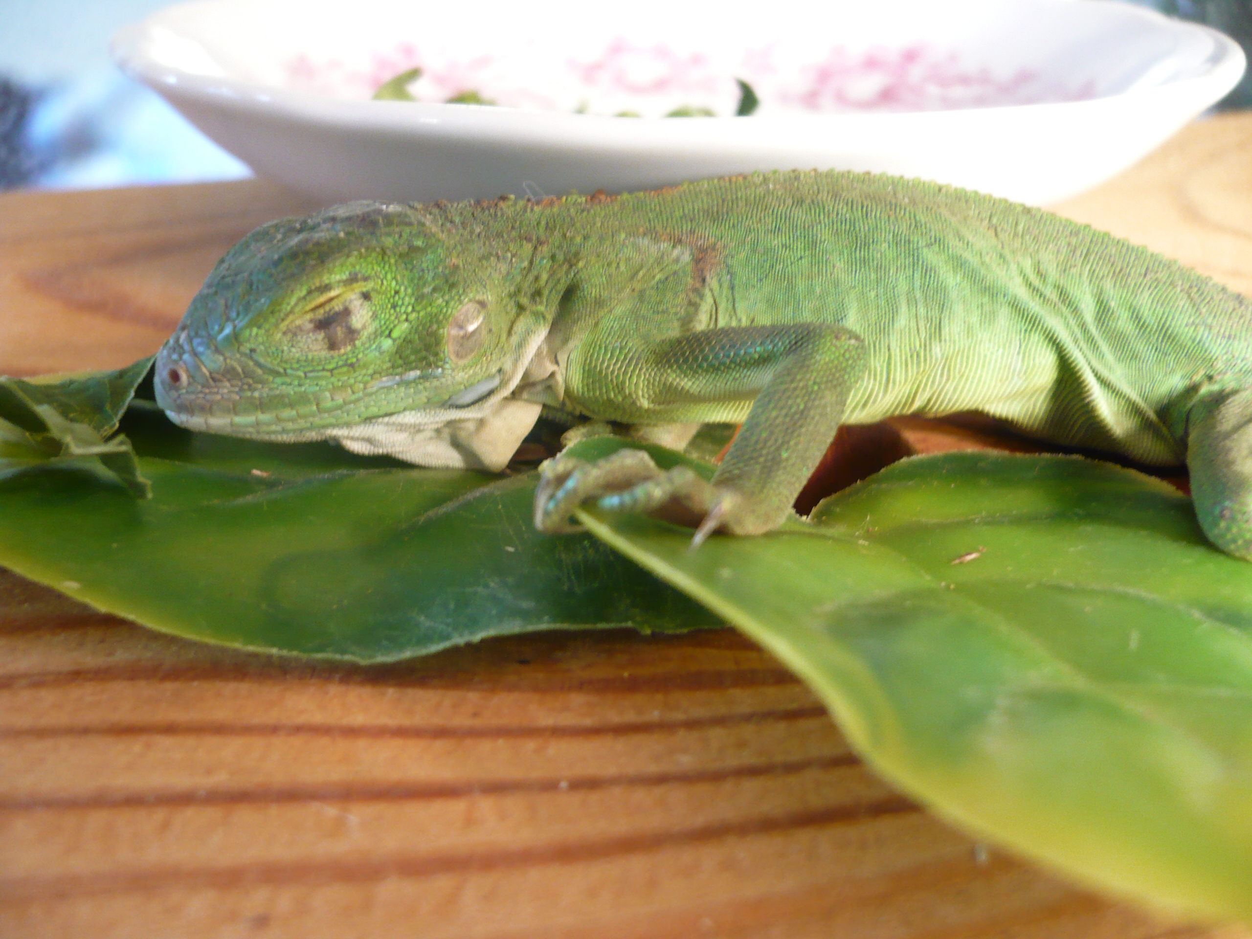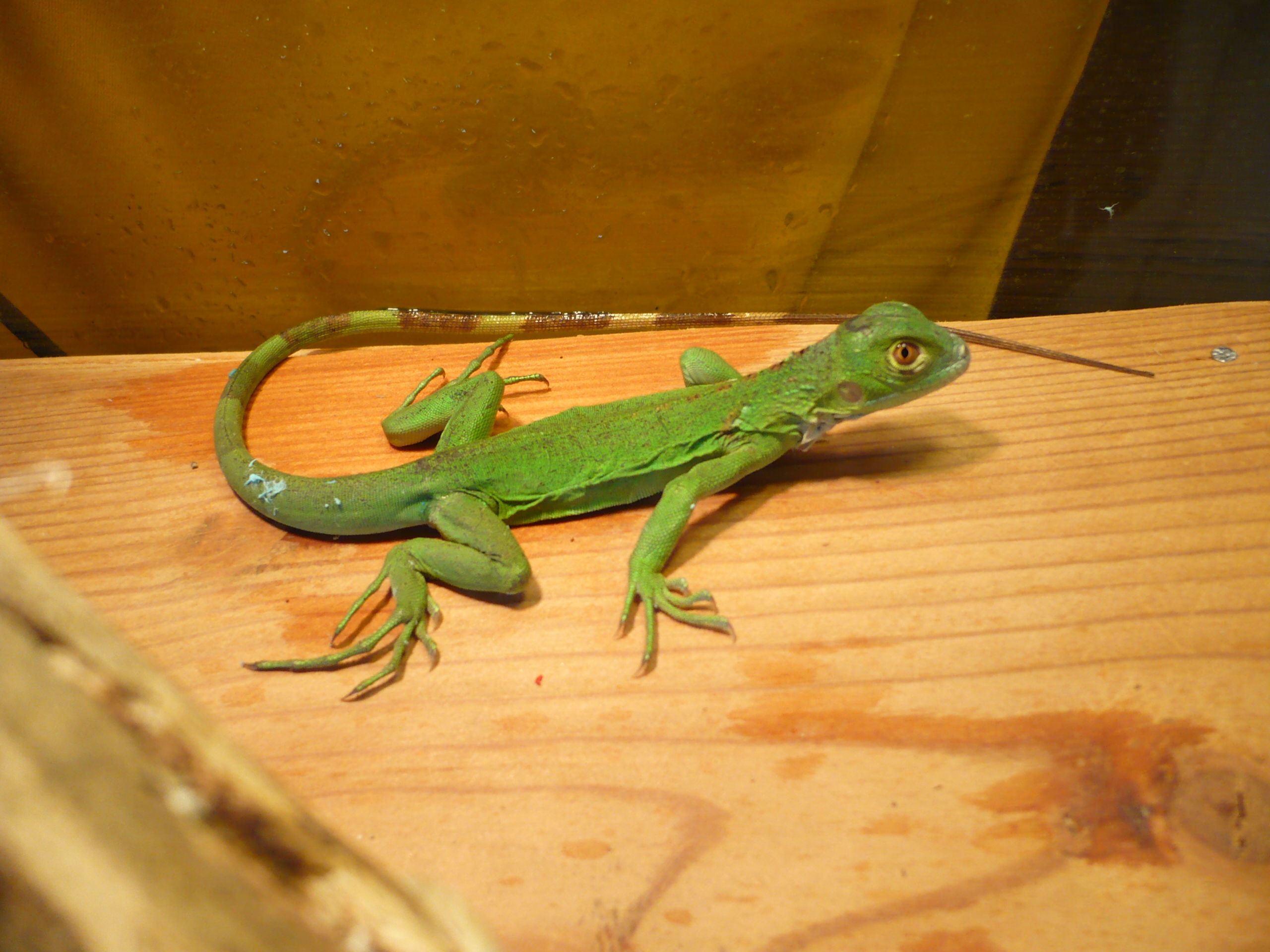 Zdrávím, v neděli jsem si domů přivezla leguána, je to prcek, má 2 měsíce a asi 25cm i s ocasem. Včera jsem si všimkla, že kousek ocásku má seschlý, zabýrá to asi 5 cm ocásku. Zatím ani nejí, neviděla jsem ani pít. Nedá se vzít do ruky, polehává pod poličkou, kde má asi 25°, občas vyleze na ohřevné místo, kde je tak 35°, jinak celková teplota je kolem 29°. Terárko je velké 70×50×50 (v,š,d), jako podklad nemá nic, mám tam akorát nalepenou tapetu. Fotky bych vložila, ale nevím jak