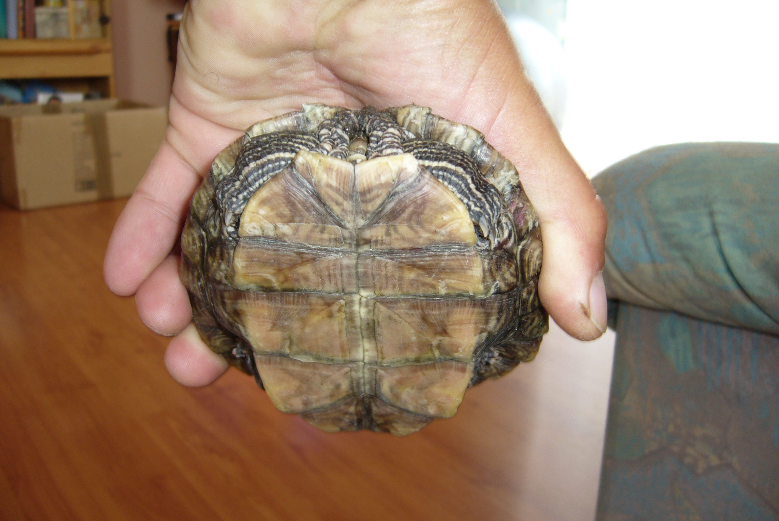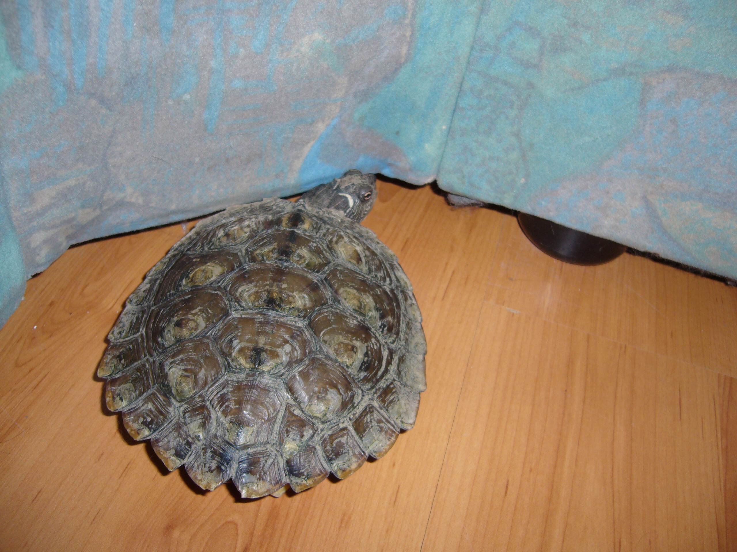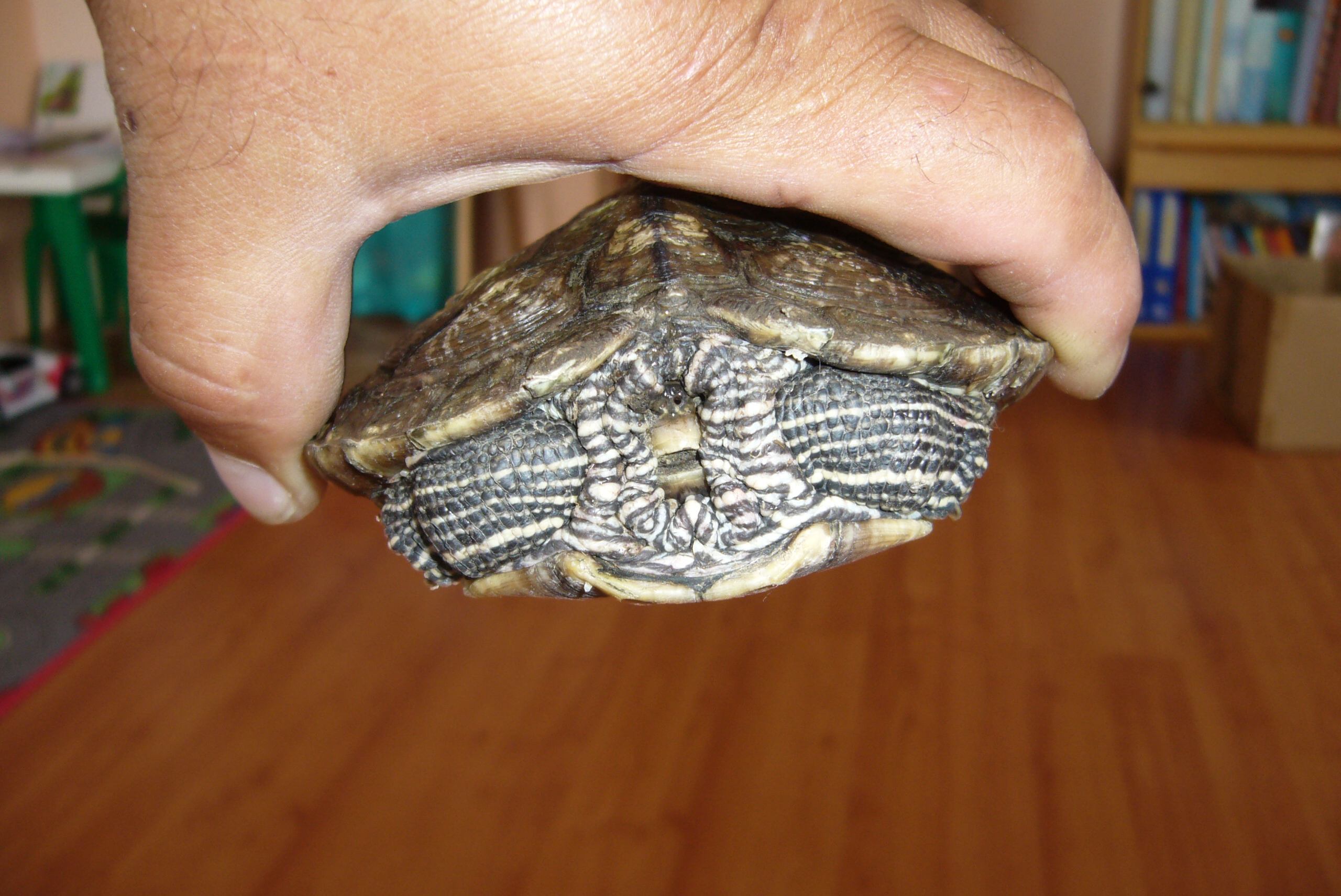 ano, mapová želví slečna, a na krunýři je trochu odřená (růžové místo, na jedné z fotek je vidět), mohlo to snad dřív i krvácet, tak bacha na plísen