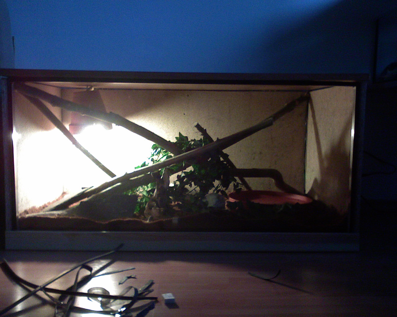 Zítra jdu kupovat pořádný desky ... tyhle stojí fakt za prd... ani se moc nedivím,že to takhle dopadlo... ikdyž tohle mělo být stejně dočasné ...vím,že by se neměli pořád stěhovat... ale potřeboval jsem nejdříve sehnat prostředky na pořádné terárko, no a chtěl jsem se zeptat jestli by nevadilo terárko které by mělo rozměry 45x92x52 DxVxŠ .. říkal jsem si,že by to taky nebylo špatné ... aby se Krajta mohla pořádně prolozit :-D ... co vy na to ;-)