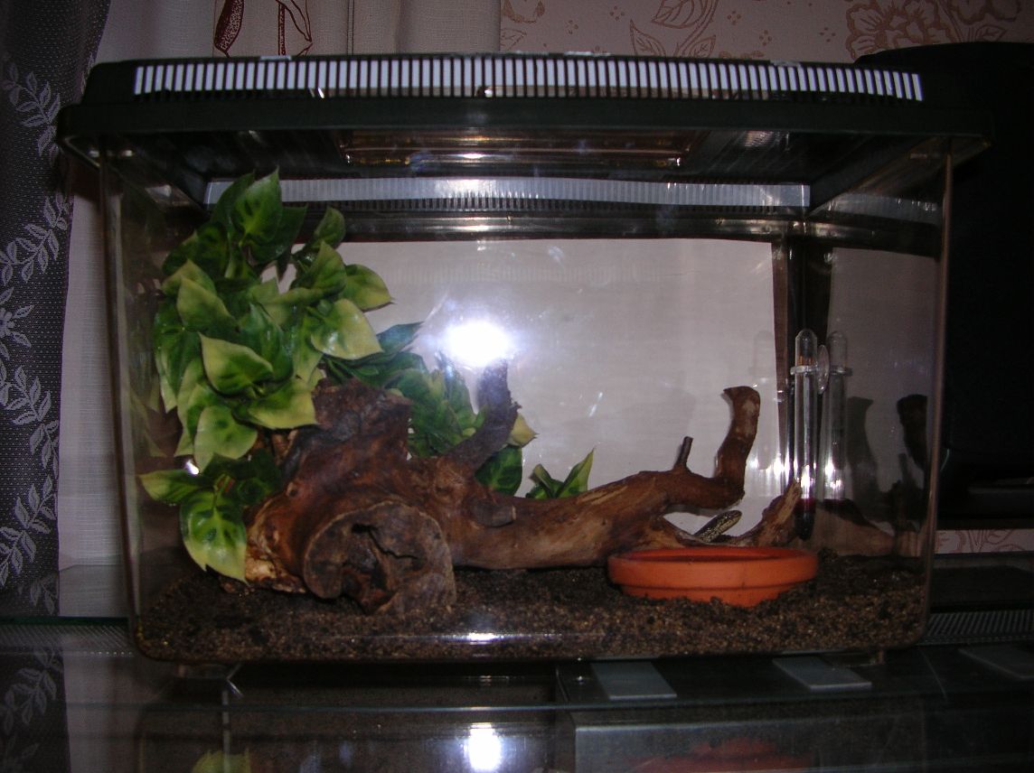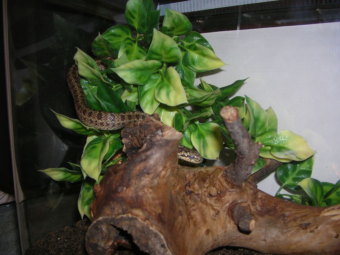 No,chtěla jsem to pro mladé bimaculaty, než trochu odrostou a než předělám skříň na terárka. Přijde mi, že se hadi cítí víc v bezpečí, když mají jednu stěnu neprůhlednou. Např. ve skleněném terku mám kamínky přilepené lepidlem na kachliky a jde to dobře omývat (pod sprchou) i desinfikovat.