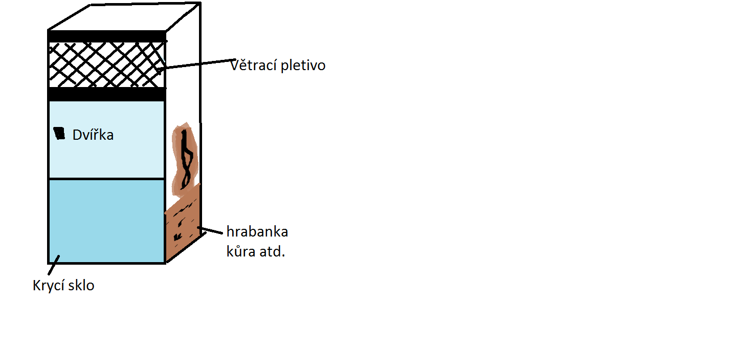 Pokud jde jen o zkrmení, tak mně se nejvíc osvědčil box s pletivovym víkem, na dně vlhký lignocel, proložky od vajec, krmit sladkym ovocen, denně/obden lehce porosit a žijou si jak v bavlnce;)