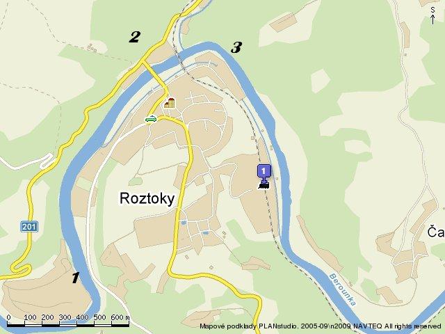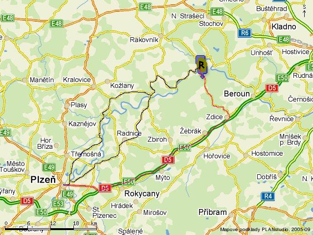 Mapa č. 2 - cesta na lokality (cílové místo Roztoky u Křivoklátu)