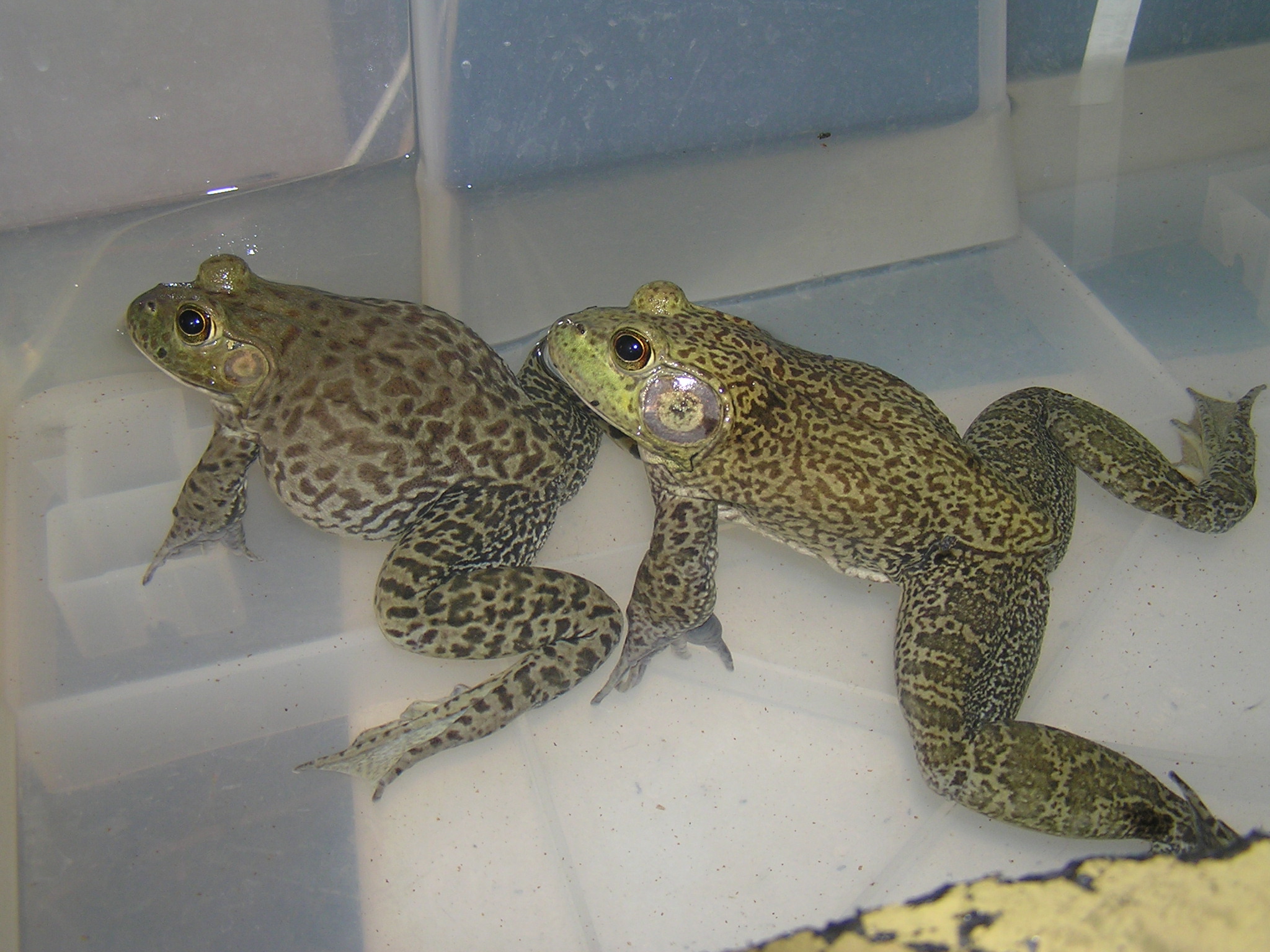 já mám všechny tyhle velké žáby v plasťácích, jenom s vrstvičkou vody (pokud nespí, to jim dávám substrát, aby se mohly zahrabat). Nejsnáz se to udržuje v čistotě a žabám to nevadí. web mám v nicku