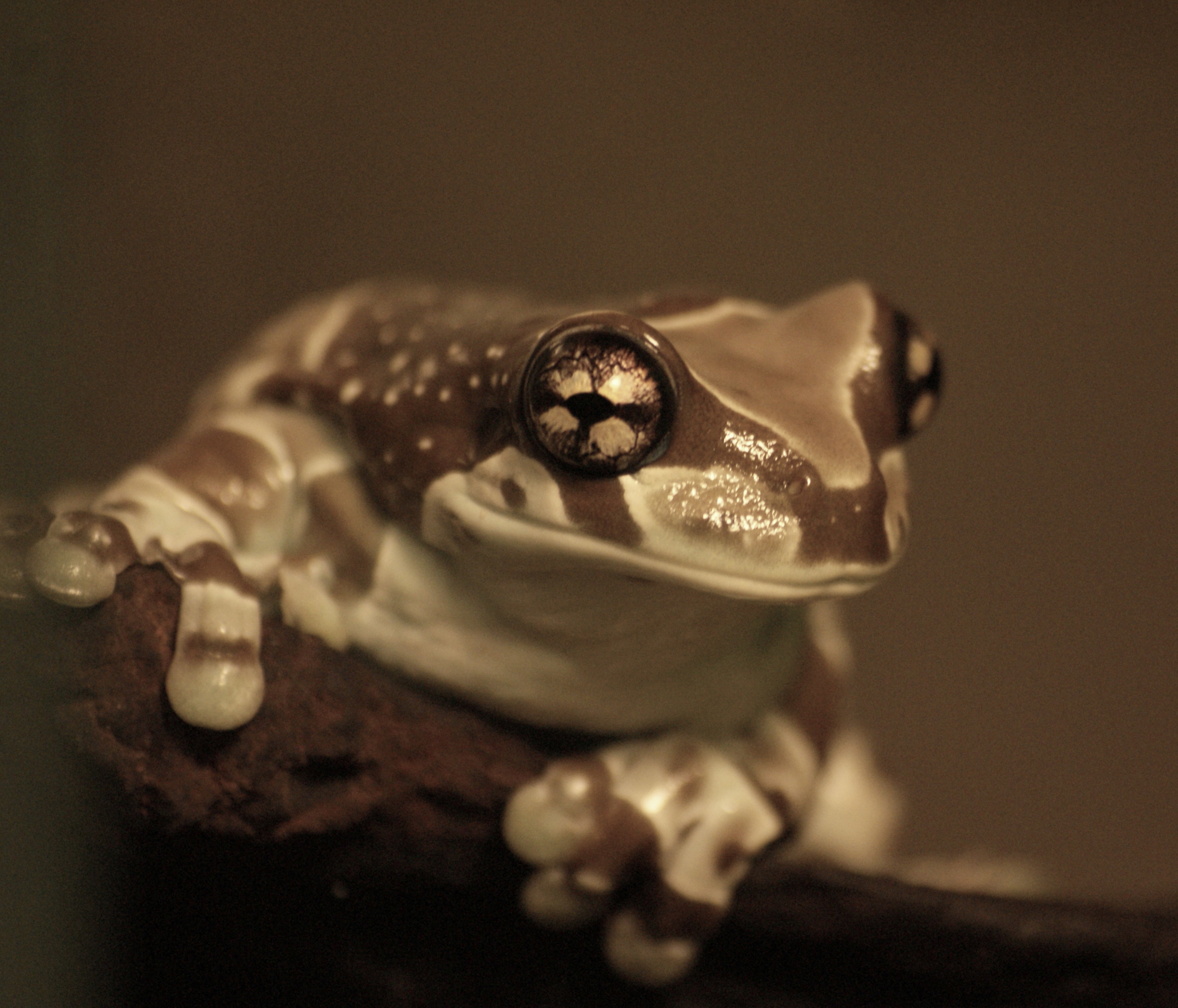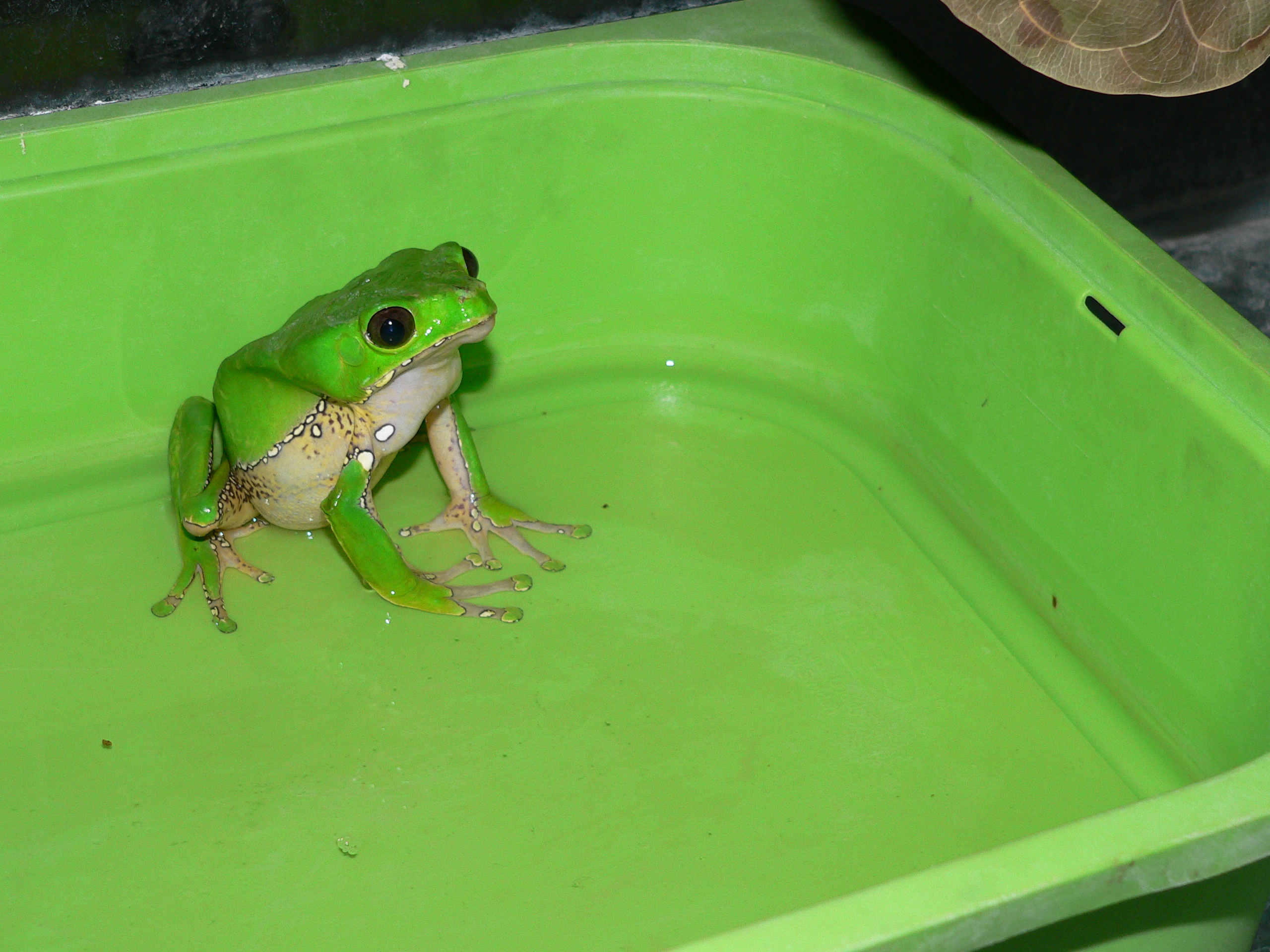 nevím zdali se to týká mne...? :-) terárko je jednoduše zařízeno, spíš snaha o co největší hygienu, mohu vyfotit, ale nic moc... teď bohužel nemám foťák doma. Přikládám fotku denního a nočního (někdy) zbarvení. Zajímavé je že to tmavé, vyjímečně hnědě skvrnité není vždy v noci, na rozdíl např. od druhu Agalychnis callidryas u kterého jsem to pozoroval vždy, ať v přírodě nebo v terárku.