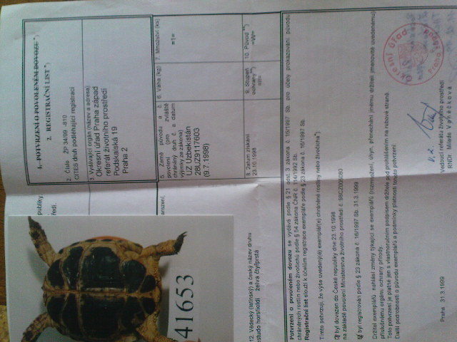 Ahoj, mam možnost koupit pěknýho samečka želvy stepní. Chci ho na chov, ale nevim, jestli by mi k něčemu byl, kvůli tomu co má uvedeno v papírech... Mrkněte na foto.