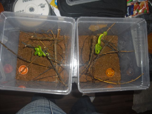 Chlorechisky z odchovu mam adultni (4lete) a importovanou samici bych tipnul na subadult az skoro adult. Tezko rict,zadny info k ni nebylo,importovanej samec je adult (od Kovalinky) :-) Pokracovat muzem radsi ve zmijich r.Atheris ,ale az zitra uz musim jit spat,rano vstavam do roboty.. :-( Kdyztak tam zacni.. :-) A mas krome Nitscheiek jeste jiny Atherisky ? Ze mas jeste jiny zmije je mi jasny z nicku.. :-) Ja jiny hady nemam.. Ale rad bych v budoucnu D.Viridis... :-)