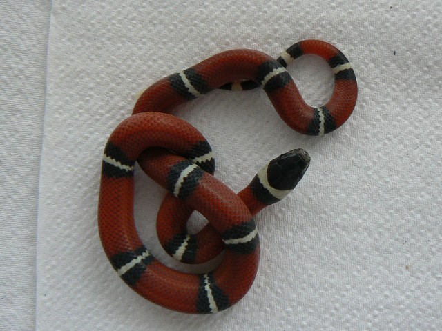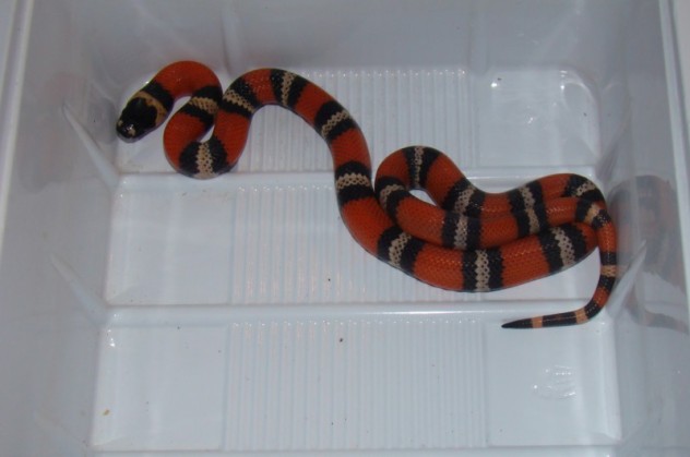 Prodám korálovku sedlatou Lampropeltis triangulum syspila 0,1 NZ 06/08. Po domluvě možno vzít na burzy Brno nebo Jihlava. Výměna možná za menší druhy užovkovitých hadů např. E. helena, E. dione, E. vulpina apod.