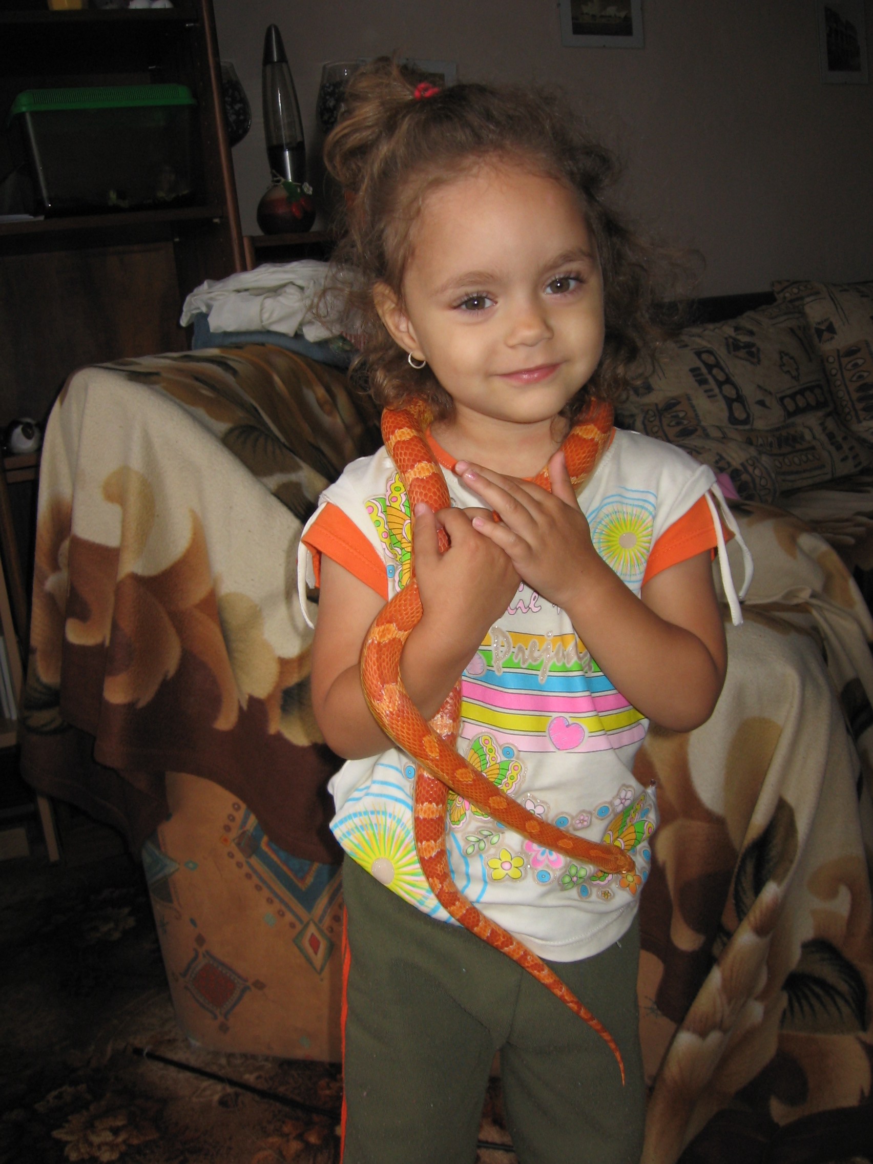 Nemá přes 150 cm,napsala jsem skoro,takže bez několika málo centimetrů skoro 150cm. Guttata je to určitě, a jestli holka:-D???Bylo mi řečeno,že jooo,ale nemám to ověřeno žádnou ze 100% metod.Bylo mi porazeno,že to zjistím když hadovi zmáčknu místo u řitního otvoru.A když jsem to zkoušela,tak jsem podle tohohle zjistila,že je to holka :)).Ale jak jsem psala,není to 100 % a jsem v tomhle i laik,le myslím,že to holka bude.Opravdu si myslíš,že je na svůj věk veliká???A když teda jooo,může jí to nějak ublížit? No a přikládám fotky abys mi opravdu věřil,že je to guttatka:-D...Ale jsou asi rok staré,takže nic aktuálního;-)...