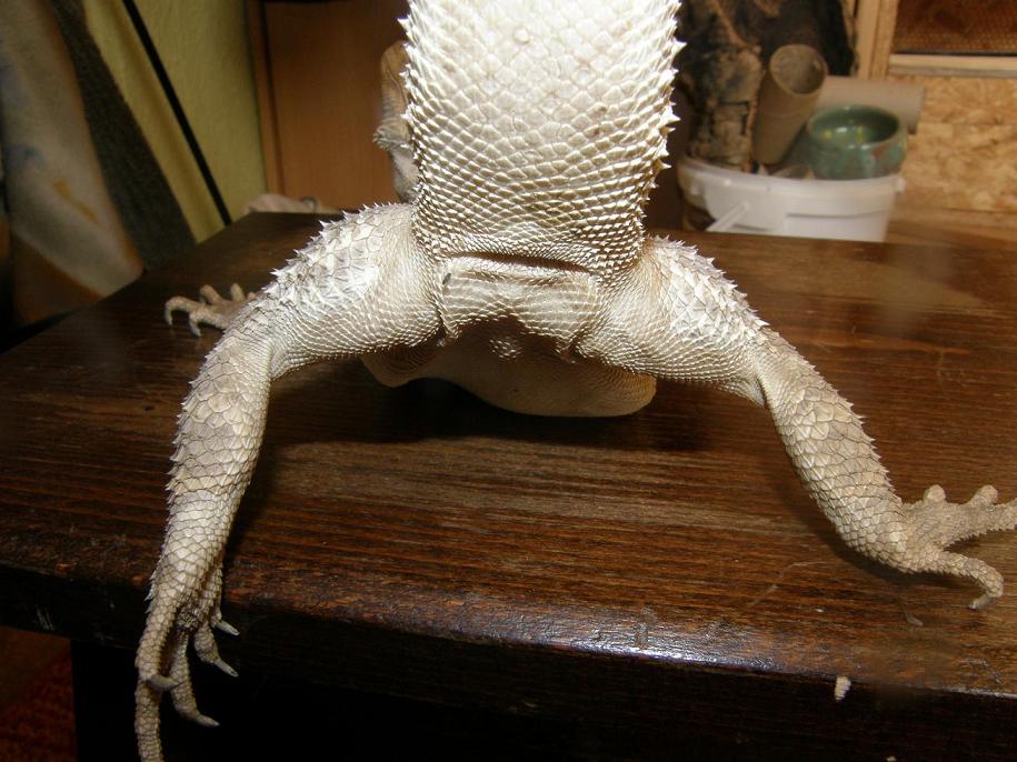 No, nevím, jestli to tak u Pogon opravdu funguje, nicméně třeba u gekončíků je to celkem spolehlivé už u poměrně malých kousků. Stačí dobré oči, lupa a udržet zvíře v klidu. Ve středu pórů buď jsou nebo nejsou malinké dírky, u spousty ještšrů, ale hlavně u dospělých (samců samozřejmě) se přímo tvoří na pórech až takový hřebínek nebo jednotlivé hrudky ztuhlého mazu.
