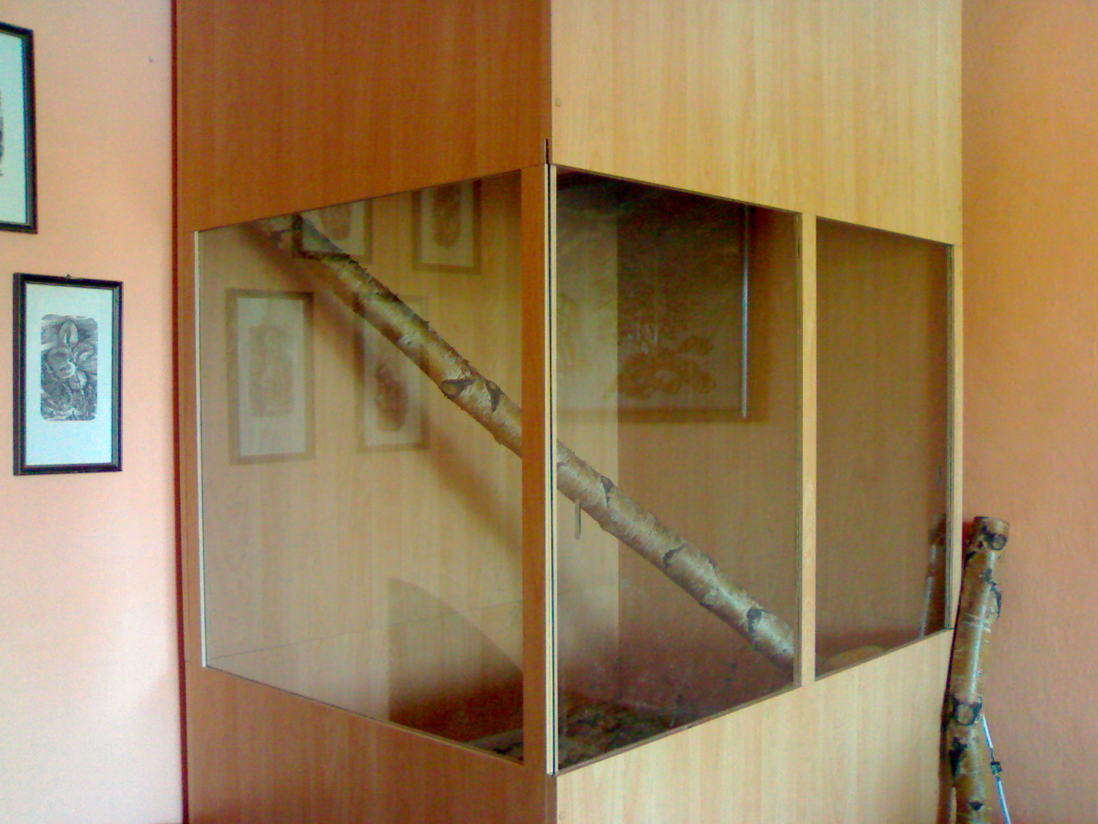 dobrý den prodám rohové terárium dělané pro drápkatou opičku...třeba ho někdo využijete cena 2000,- velikost 125cm výška 80x80cm šířka rozšíření 30cm