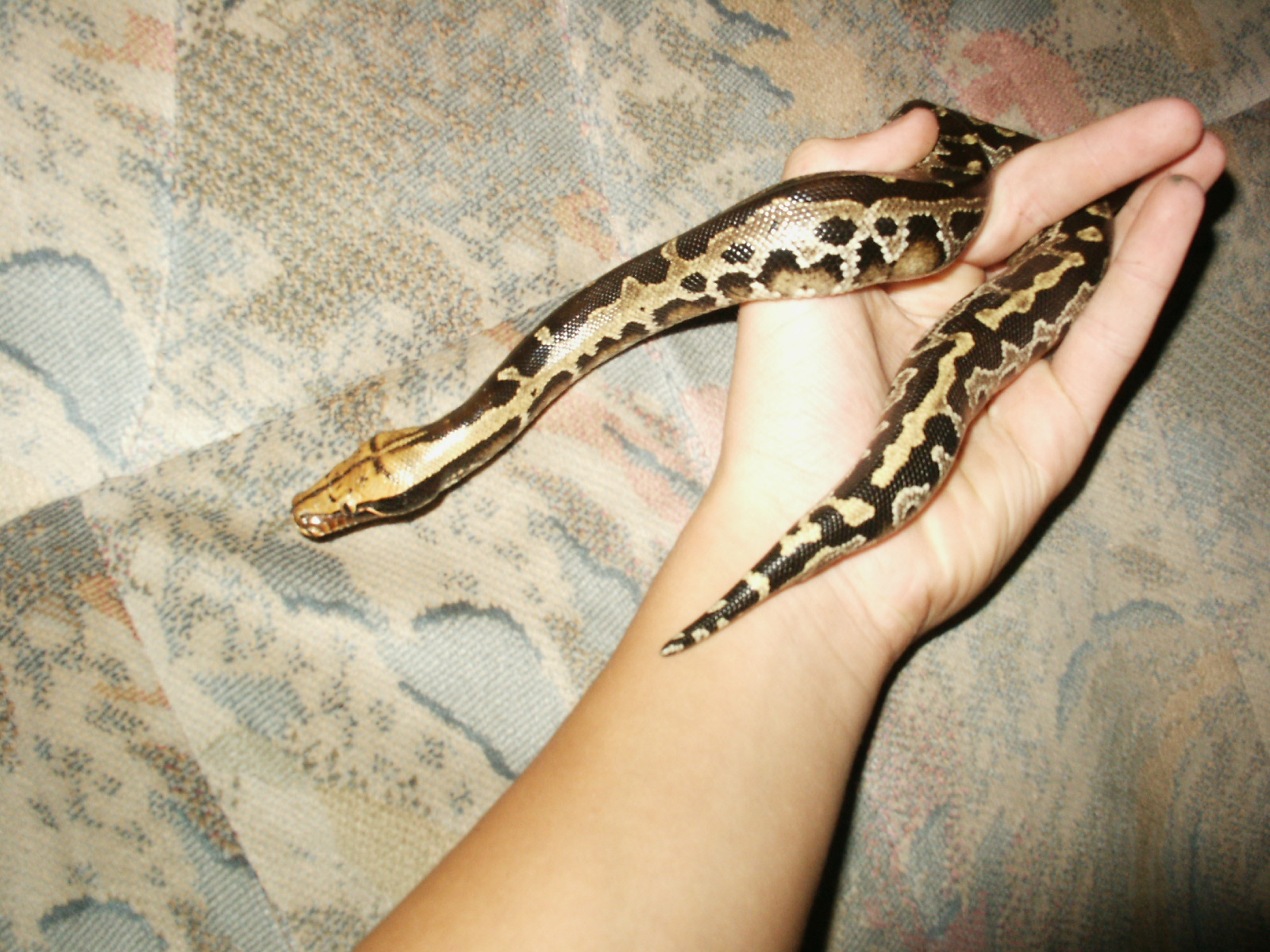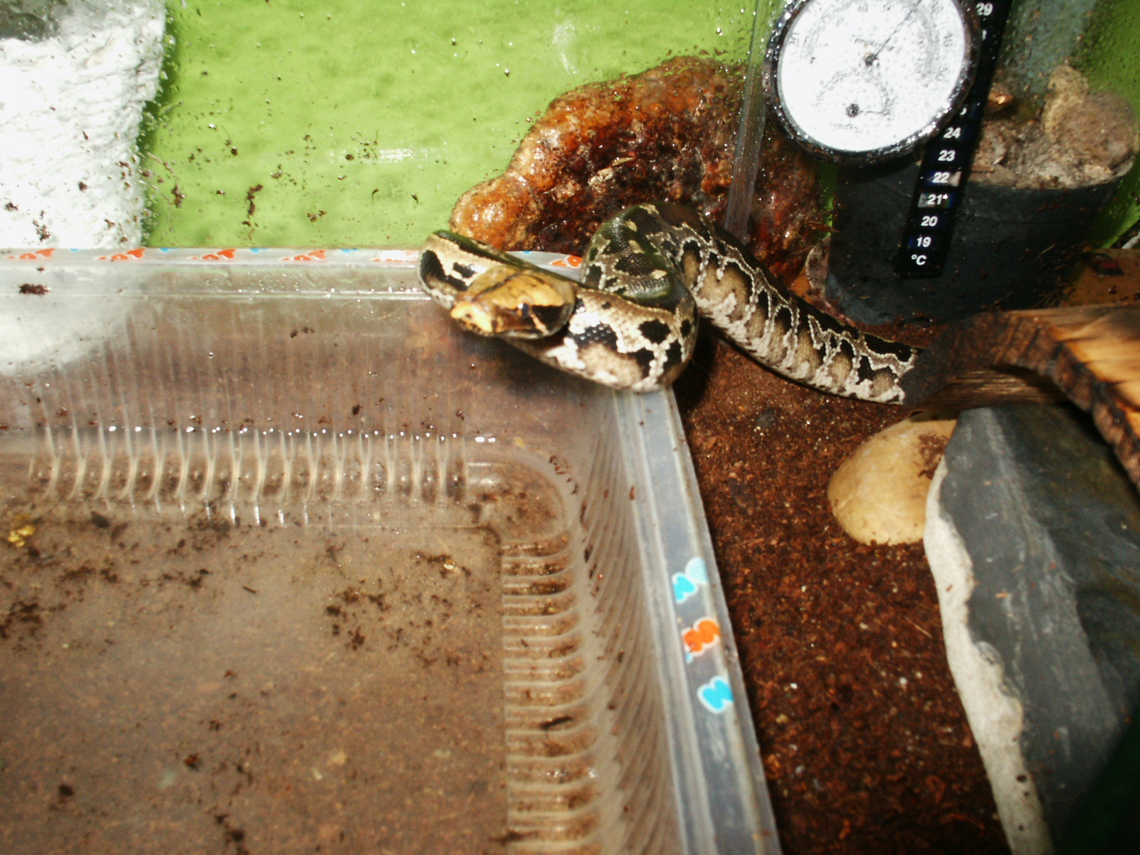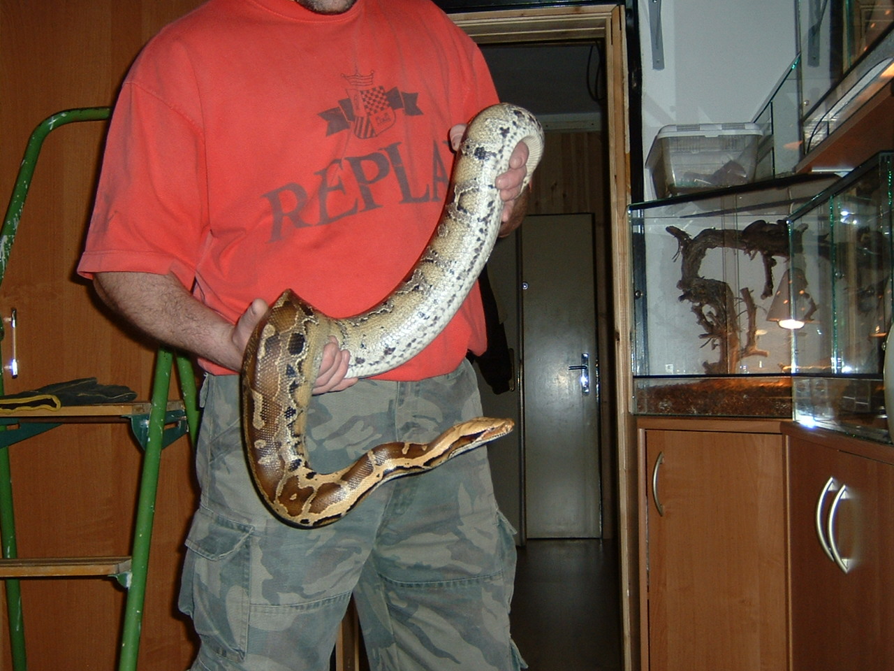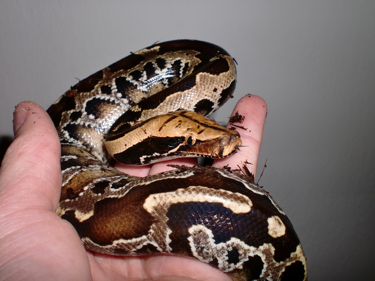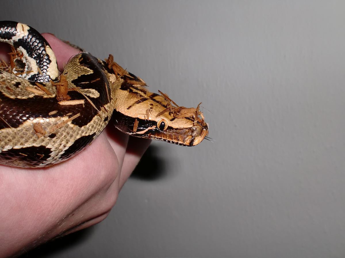 Tak tato krajta je jak pisou nademnou dosti nasiraci ale tak kdyz hada nejakym hackem, klacikem, trubickou vyzvednes na ruku a pak na ni budes pomalej tak se sklidni a bude jako beranek.... jinak ja mam svoji P.curtus breitensteini na cyprysove drti (jemnejsi) a kazdy vecer poradne navlhcim a had smejdi v noci po terku a az se unaci tak se zase zahrabe jde "na kutě".