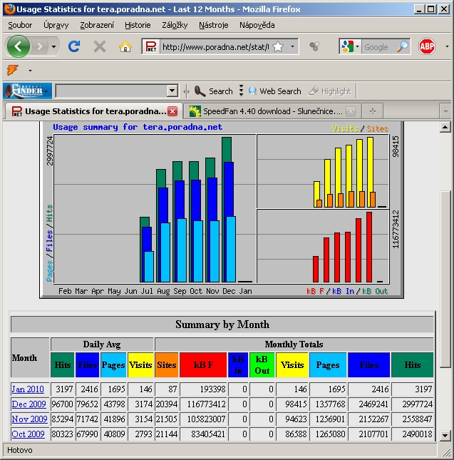 Ta tabulka pod tím jsou uložená data v kb opět v daném měsíci ...