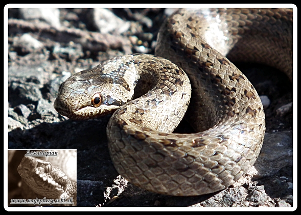 Zamenis longissimus - užovka stromová (mláďata mají taky "měsíčky" za hlavou jako užovka obojková)