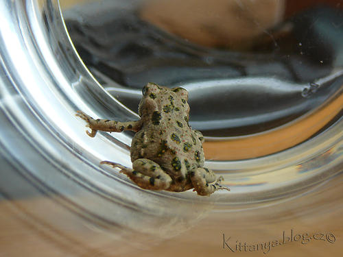 První úlovek!:-)Bufo viridis, 3.1. 20:15 - místnost, která nám prozatímně slouží jako obývák Za výskyt tohoto prcka může díra v betonu v podlaze, kudy zřejmě přivandrovala...naštěstí jsem ji zbystřil dřív než psi...