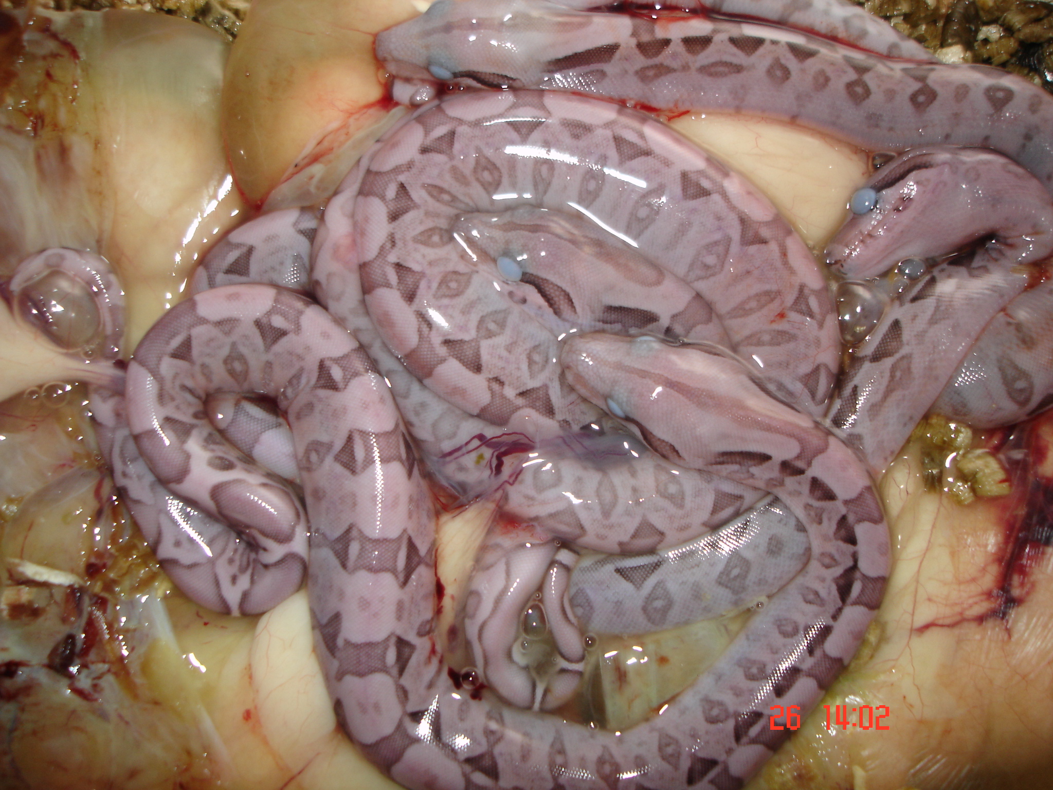 Za 13 rokov čo chovám hady mi včera večer uhynul prvý had a to samica B.constrictor cca. dva týždne pred pôrodom. Keď som to zistil mohla byť maximálne 3 hodiny mrtva.Bez odkladu som začal pitvu.Vybral som z nej mláďatá s plodovýmy vakmy tak aby sa nepoškodili viz.foto nižšie.Na moje veľké prekvapenie sú mláďatá po 24 hodinách stále živé.Chcel by som sa spýtať či niekto s týmto nemáte skúsenosti a aká je pravdepodobnosť že sa doliahnu.Ak sa s týmto nik nestretol určite vás budem informovať ako to dopadlo a pevne verím že moje poznatky pomôžu viacerým z vás zachrániť veľa životov teráriových zvierat.Pred 8 rokmy sa mi podarilo umelo oplodniť samicu P.m.b., pred dvoma rokmy som vyliečil u kamaráta 5 B.constrictor pravde podobne retrovirus (vytáčanie hlavy),myslel som si že ma už nič neprekvapí a teraz toto držte mi palce aby to dobre dopadlo a vopred vám ďakujem za užitočné rady a postrehy k tomuto problému.