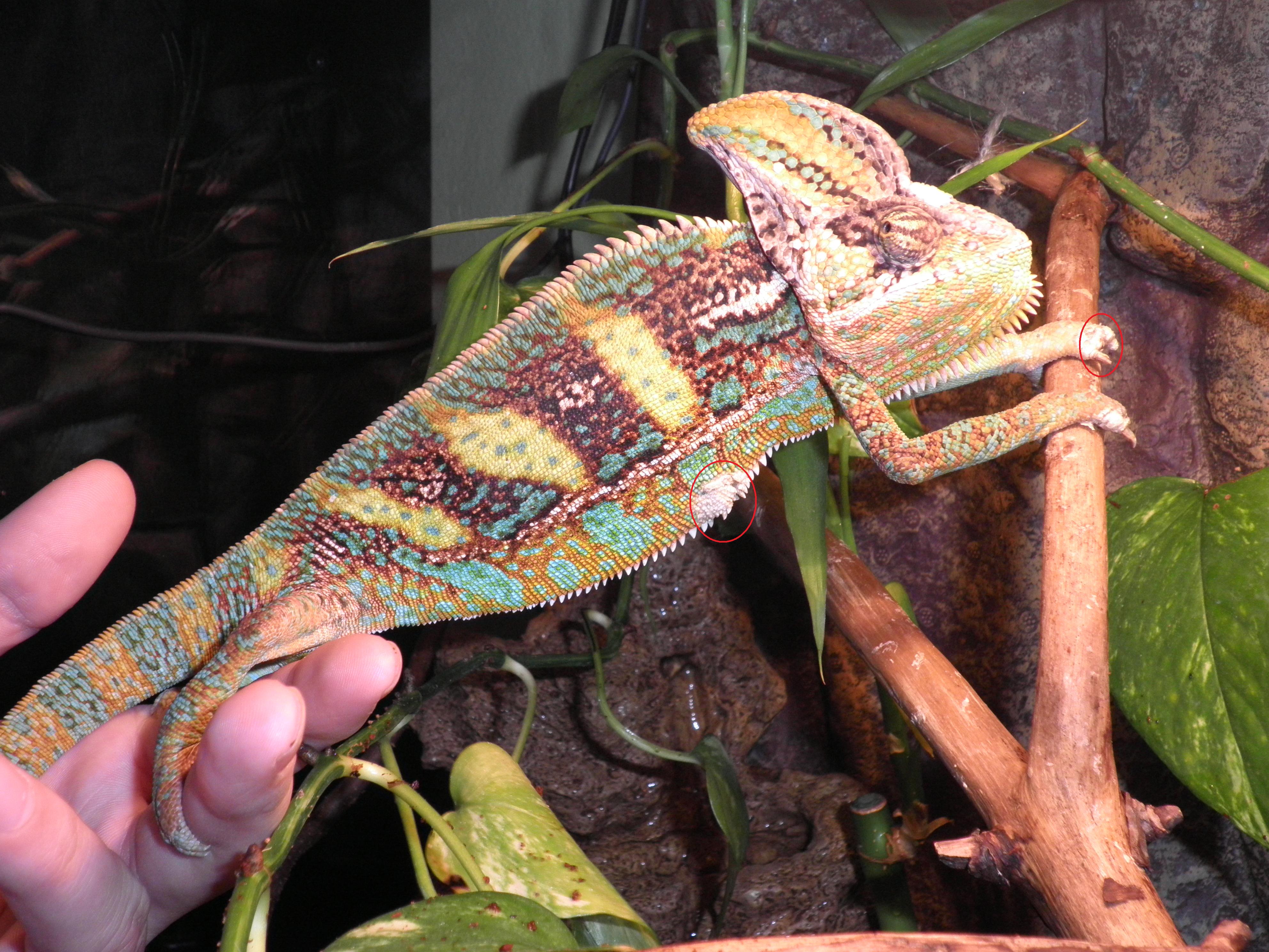 Dobrý den potřeboval bych poradit mám asi ročního Chameleona jemenského. Zůstává mu na hlavě nesloupaná kůže jen z jedné strany a na konci nožičkách u drápků má taky tu kůži.Tedka mu upadli 2 drápky nevim jestli mu dorostou a jeste se mu to udělala tak 3 cm od konce ocasu ta kůže a tedka je to tam trosku tmavé ten kousek.