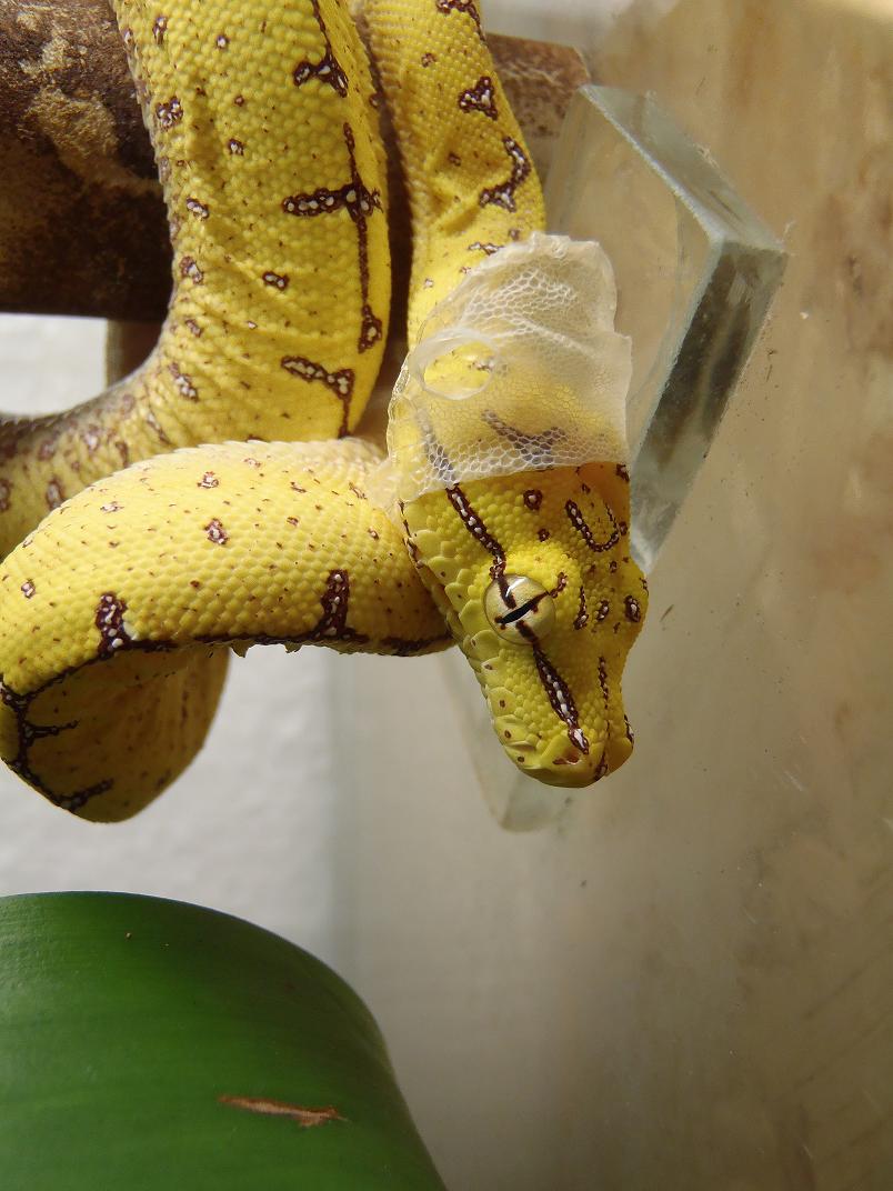 jiher: u viridisek nemusí být zakalení tak výrazné jako u kobercovek, takže pokud se ti ještě nesvlíkala tak se nedivím, že si nejsi jistý. U některých našich hadů je zakalení mléčné a u některých si všimneme blížícího svleku spíš podle chování - změní oblíbené místo a na větvi visí "lajdácky".