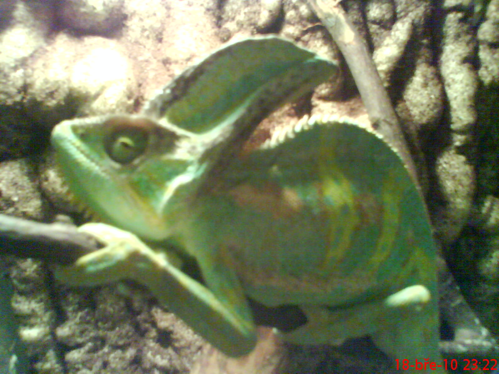 Ahoj, prosím o radu. Máme chameleona jemenského, dnes ráno ale ležel na zemi, ztratil barvu, je zašedlý a má zapadlé oči. V úterý dostal cvrčky, které jsem dnes našla v teráriu vyzvrácené. Nejí, nepije, jen leží na klacku a má podepřenou hlavičku a usíná. Zítra se chystáme k veterináři, ale kdyby někdo věděl co by to mohlo být, budeme rádi za jakoukoli radu.
