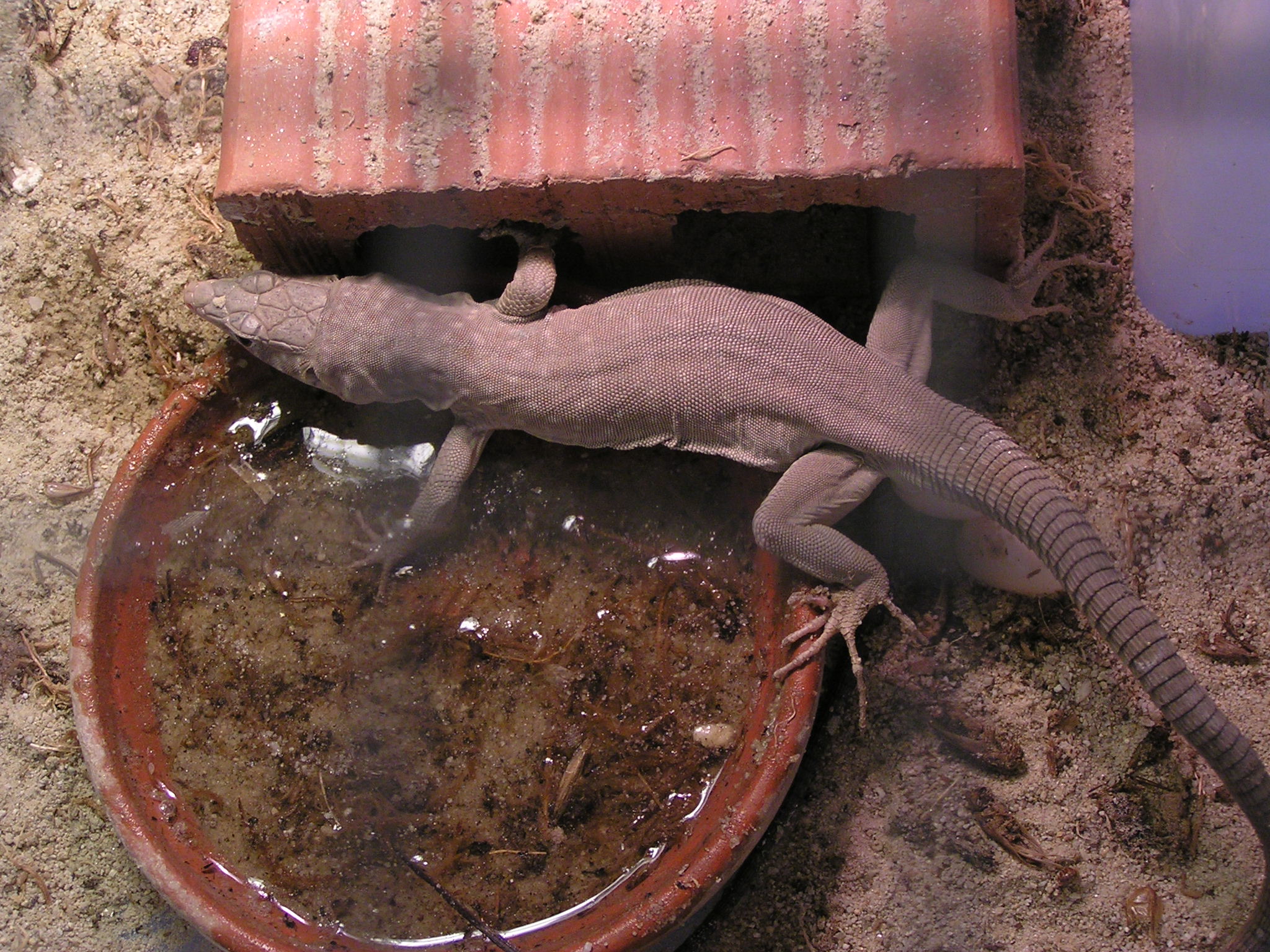 Kaja: Diky Johnny: mel jsem tu cest se setkat s nekolika dospelymi samicemi a je pravda, ze vsechny byly zatim dost mrchy - porad mluvim o leguanech Je to focene asi po 15 minutovem koupani ve vanne...tam jsou klidasove...samozrejme kdyz je chytam v terariu, tak je to dost porod - zdrhaji do posledni chvile. Kdyz dam ale pak ruku do vanny, tak na ni naopak lezou - vetsina z nich totiz vodu nema rada. Tak je to pomalu se vsema leguanama - nejhorsi je je z teraria odchytit - pak, kdyz jsou mimo sve teritorium, uz jsou v pohode.