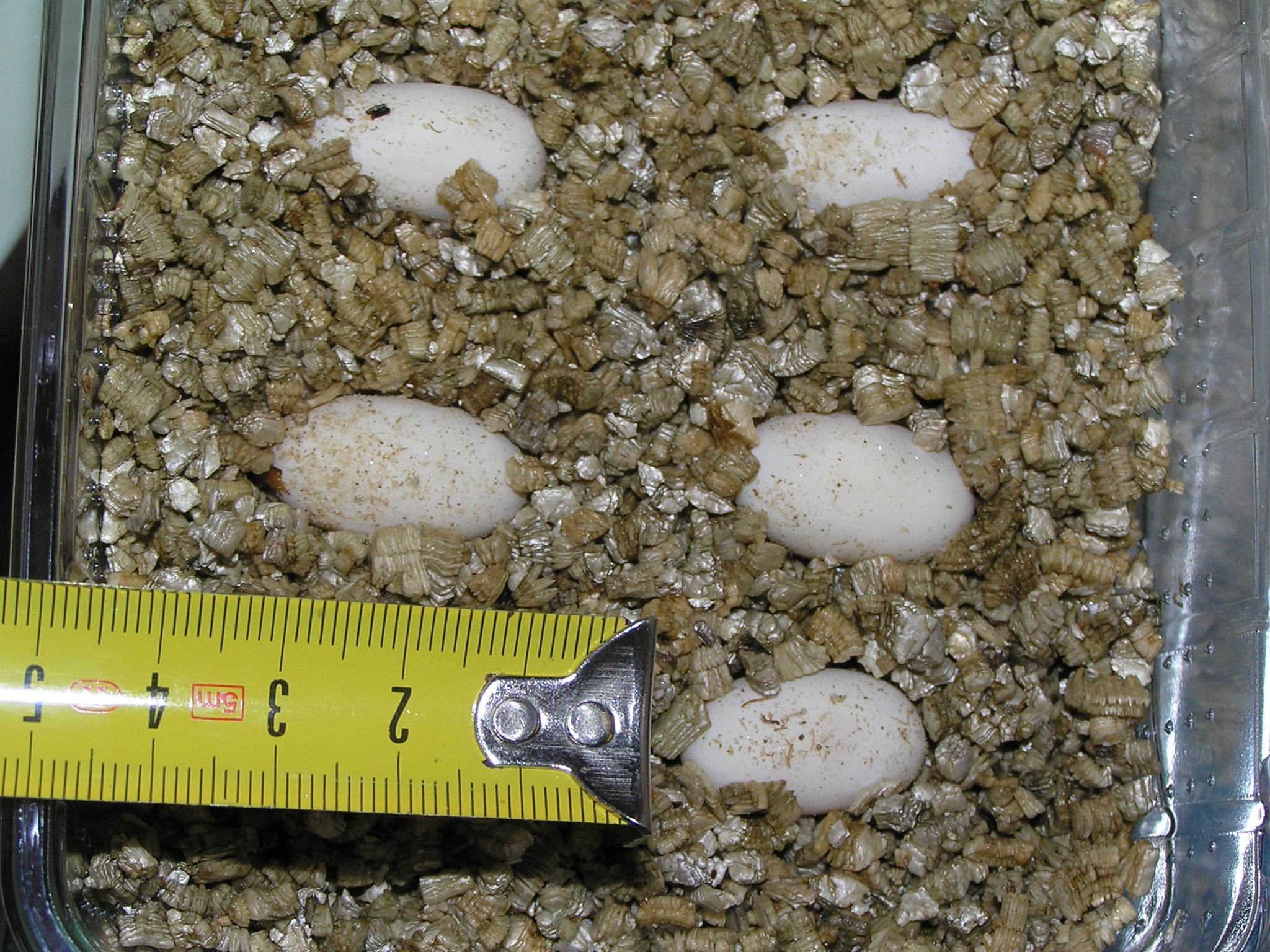 Pár se začal ihned po seznámení množit, máme pravidelně každý měsíc dvě vajíčka, 100% líhnivost a zcela minimální úmrtnost. Jednou jsem vajíčka nenašla a mláďata se vylíhla v teráriu, kde bohužel nepřežila, jinak jsou všechna mláďata vždy vitální. Z prvních mladých jsem si nechala pár, který už je skoro dospělý. Jsou to skutečně krásná a vděčná zvířata.