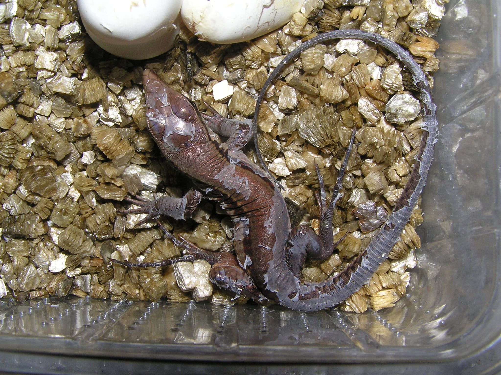 Ameiva ameiva- snůžka, novorozené a 2 dny staré mládě