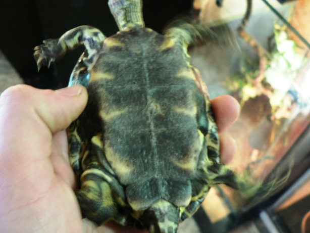 Fotky plastronů jsou zvířata po importu, předcházející fotka je z loňského dubna za slunečního osvitu. Po zimování jsou takový vyblitější, ale během léta ztmavnou. Další fotka je tady http://tera.poradna.net/file/view/275-mauremys-jpg .