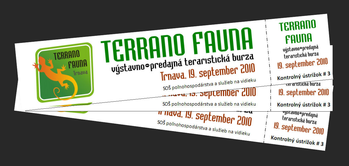19.9.2010 (nedeľa) - Celoslovenská výstavno-predajná akvaristická a (najmä) teraristická burza TERRANO FAUNA sa koná dvakrát ročne; v jarnom a jesennom termíne.