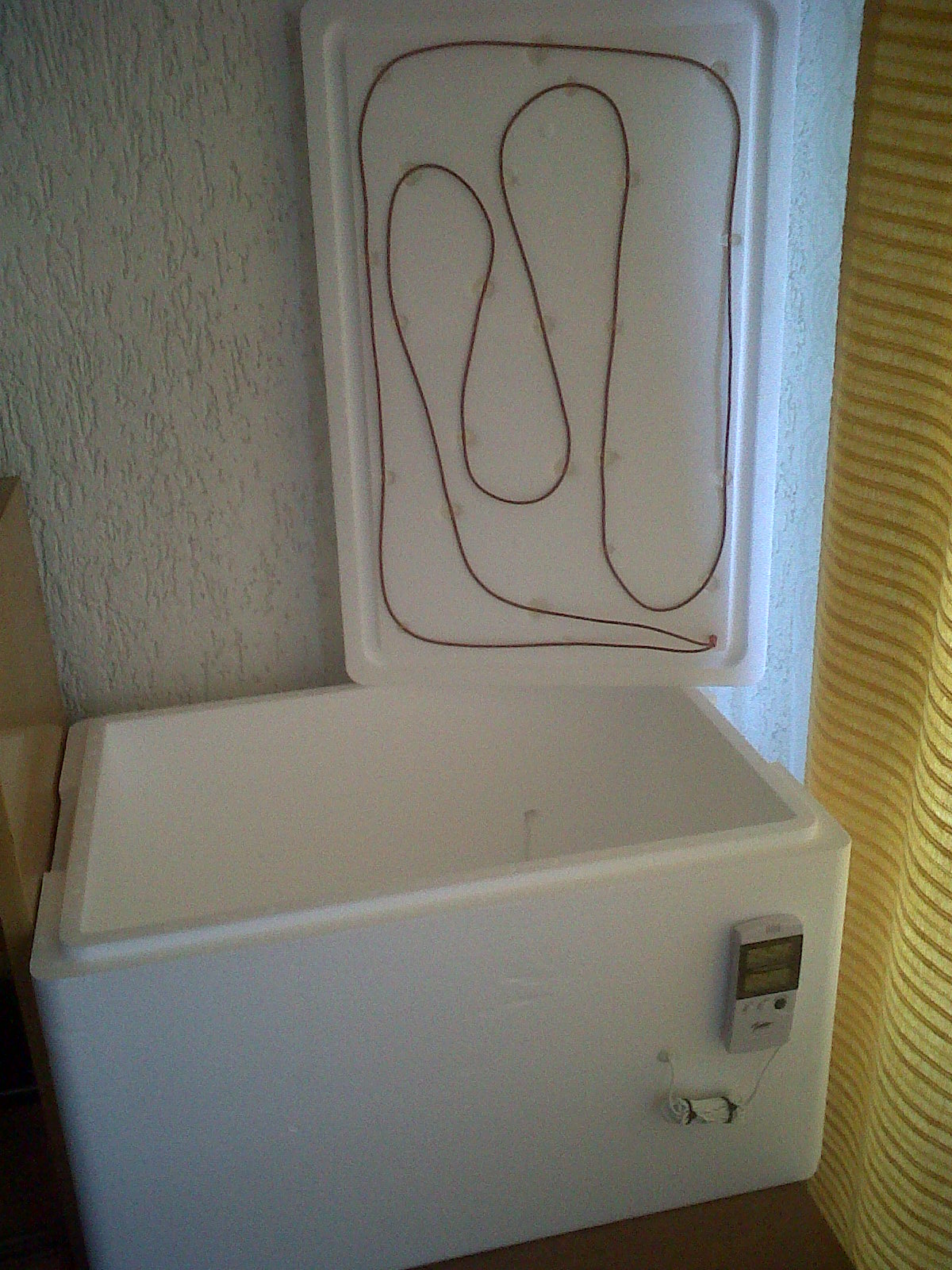 Nejsem elektrikář, ale toho kabelu nalepeného přímo na polystyrenu bych se bál. Termobox neděruj, st…