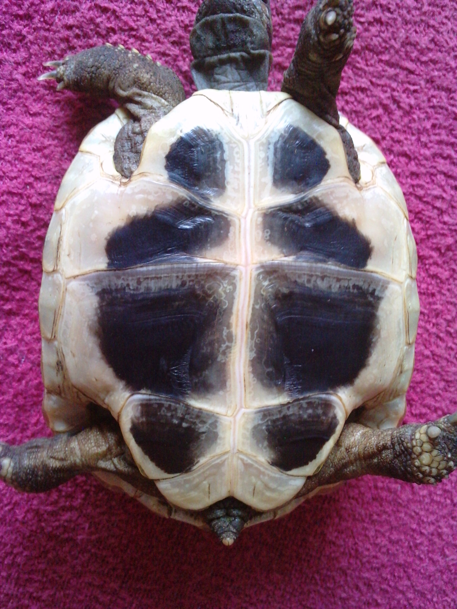 Ahoj, poslední dobou objevuji asi roční hermannce na krunýři flíčky (ne jen z boku jako je vidět na fotce), nevíte čím by mohly být způsobené?