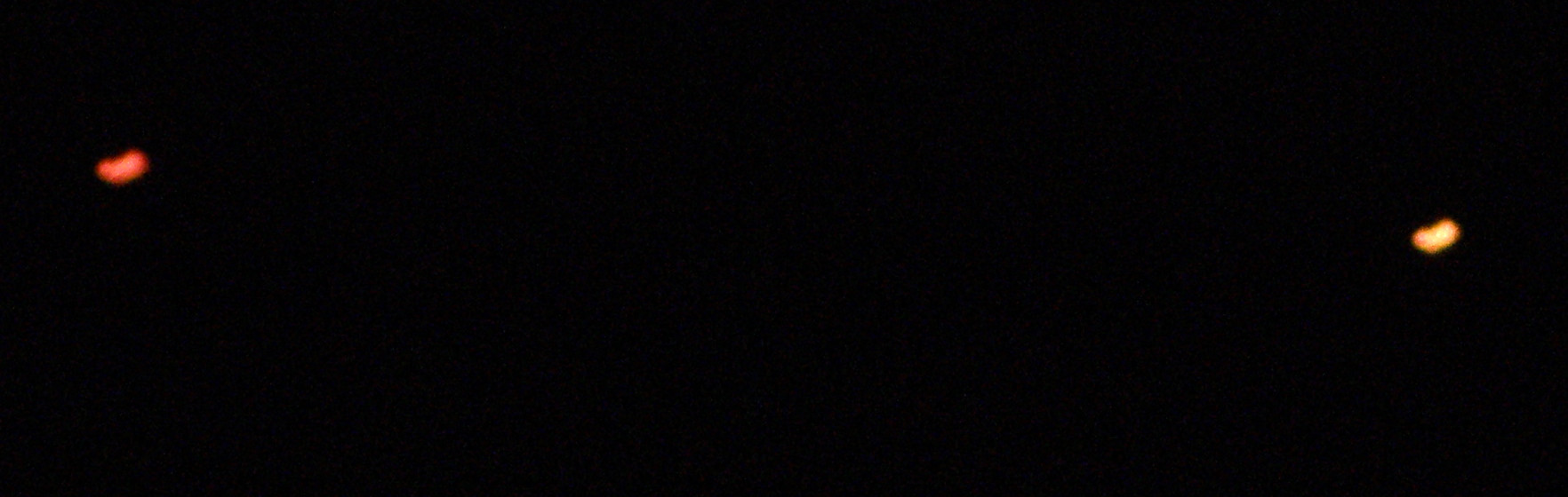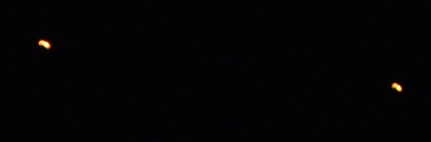 Když jsem si byl před chvilkou zakouřit na balkon (Ostrava, 22:25), tak jsem viděl nad obzorem taky docela zajímavý svítící útvar. Hvězda to nebyla, bylo to výrazně větší, ani letadlo to nemohlo být, protože (to je zajímavé) zrovna v tu dobu tam přelétaly dvě letadla (postupně). To moje UFO (viz fotky níže) téměř stálo na místě a po chvilce kolem něho přeletělo docela rychle to samé (to jsem nafotit nestihl). Tak nechápu, jak jedno to světlo mohlo stát na místě a druhé rychle letět kolem, takže bych řekl že to ty výše zmíněné balóny štěstí být nemohly.