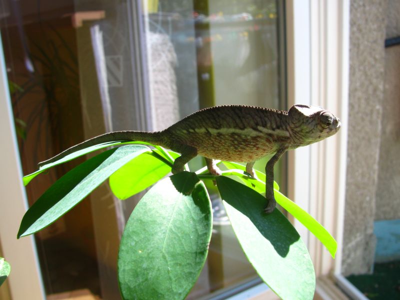 Dále by by mě zajímala velikost. Chameleon je zhruba 5 měsíců starý, doma ho máme zhruba 3měsíce. V těle zhruba 7cm. Na burzách pokud vidím půlročního Pardalise, tak je již vybarven a skoro 2x tak velký. Klamou chovatelé na burzách a úmyslně uvádějí nižší věk, nebo je můj prcek pozadu?