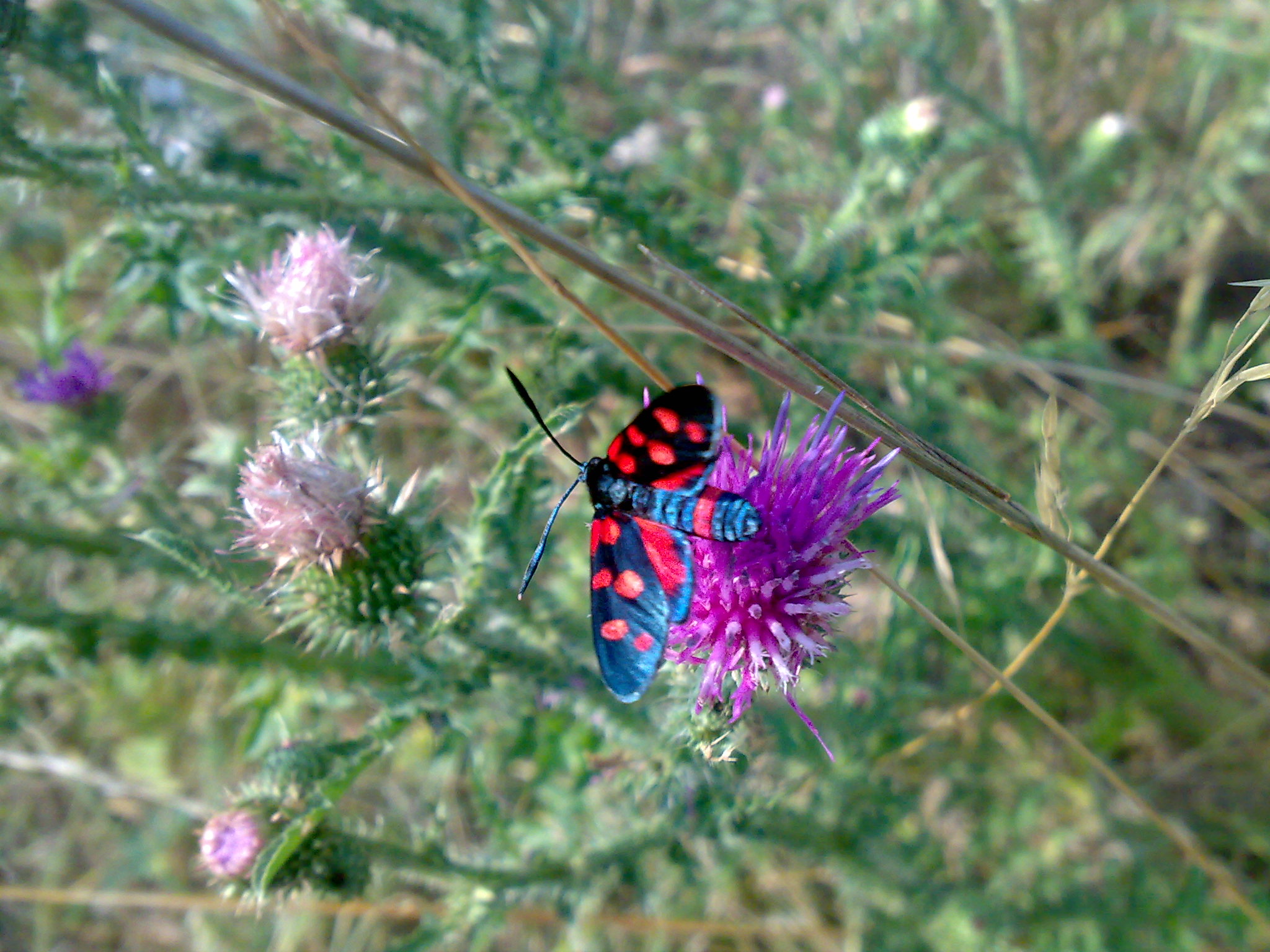 podle mého se jedná o vřetenušku obecnou (Zygaena filipendulae)...